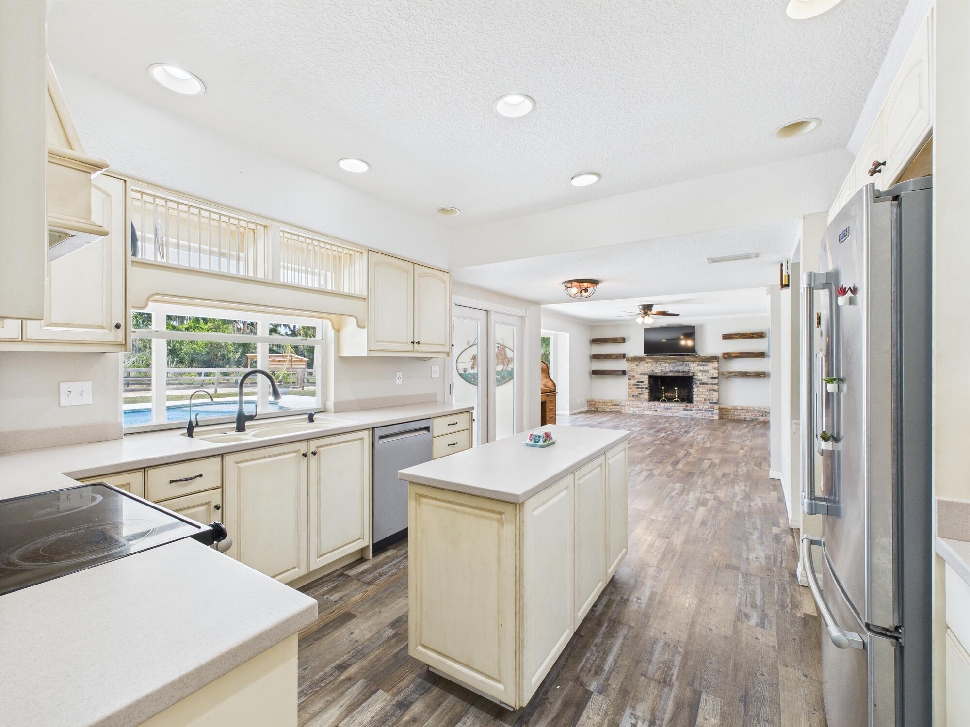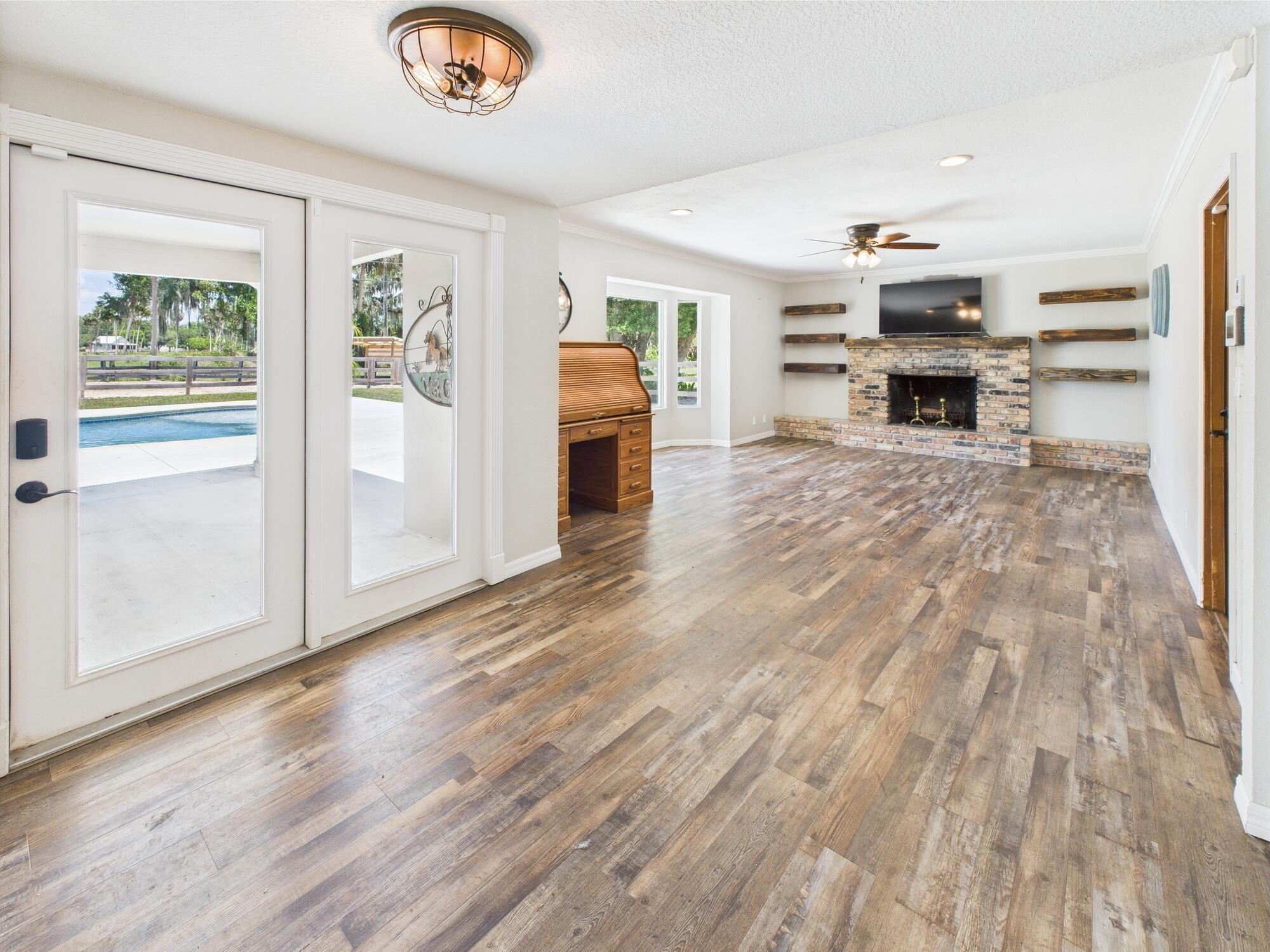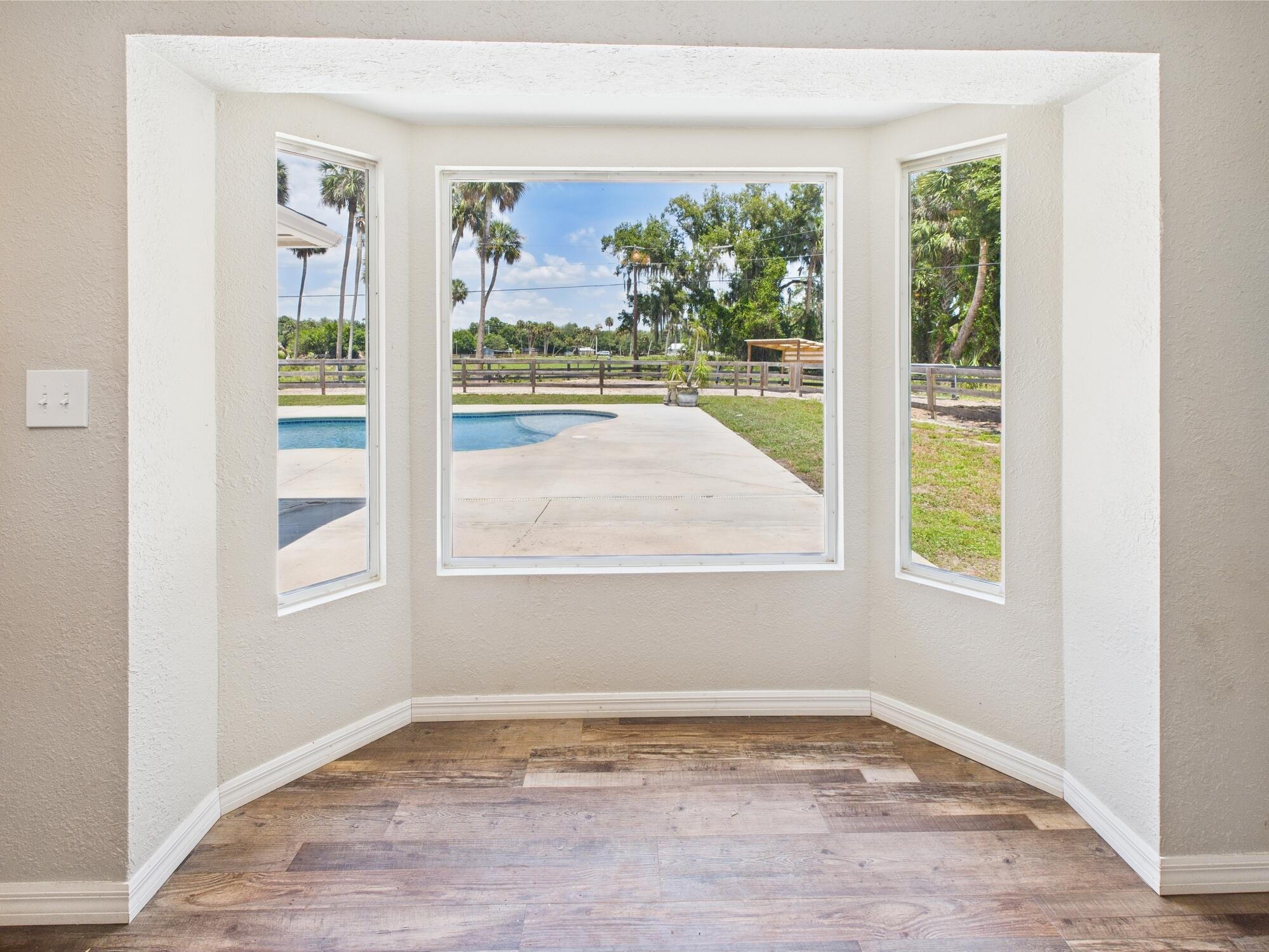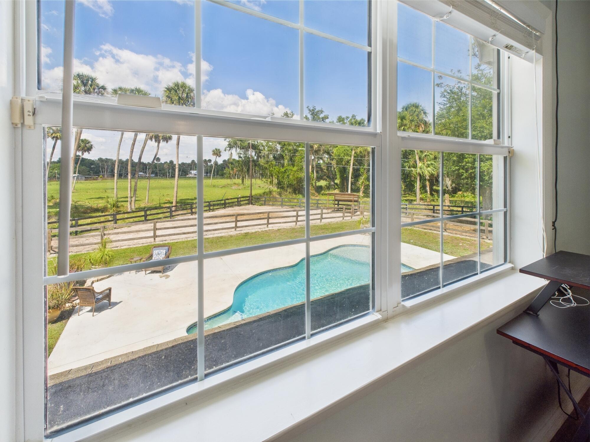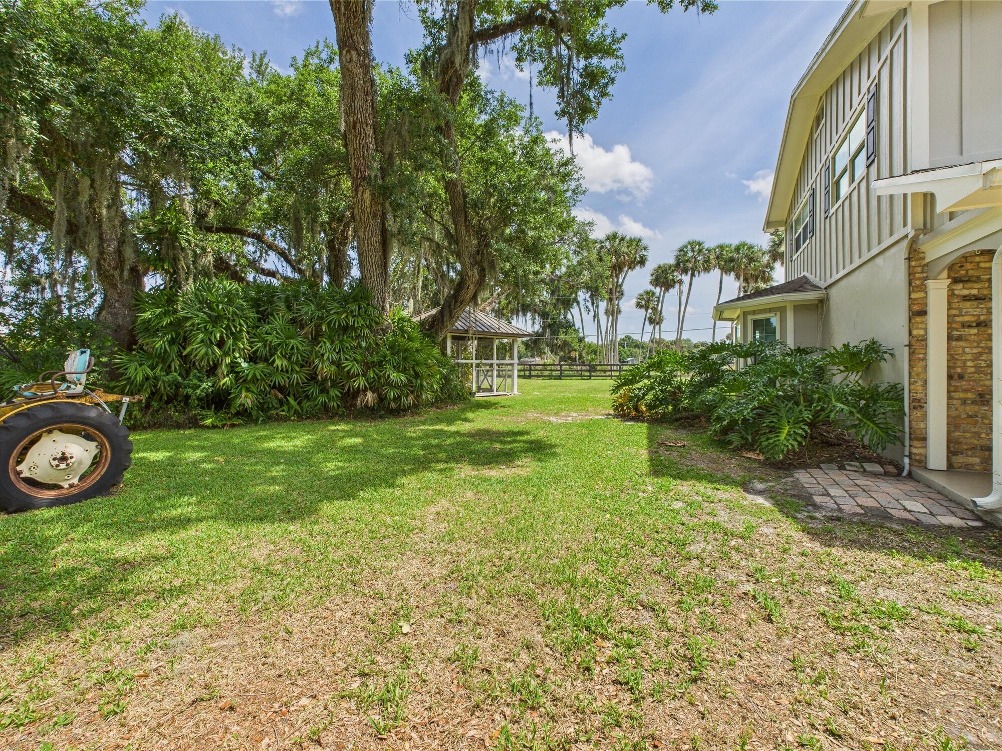 Tucked away on a cul-de-sac in Okeechobee's desirable southwest section, this one-of-a-kind 3BD/2BA two-story home sits on four lots with 2,863 sq. ft. of living space with 5,578 total sq. ft. It features a spacious master suite, formal foyer, living and dining rooms, a chef's kitchen with breezeway window, and a cozy family room with a stone fireplace. The main house has an attached two-car garage, plus there's a massive 2,200 sq. ft. detached garage with a finished office and a partially finished bathroom. Enjoy the NEW 2022 heated pool, two stables, a winding paddock, impact windows upstairs and shutters down, and plenty of room for all your toys.