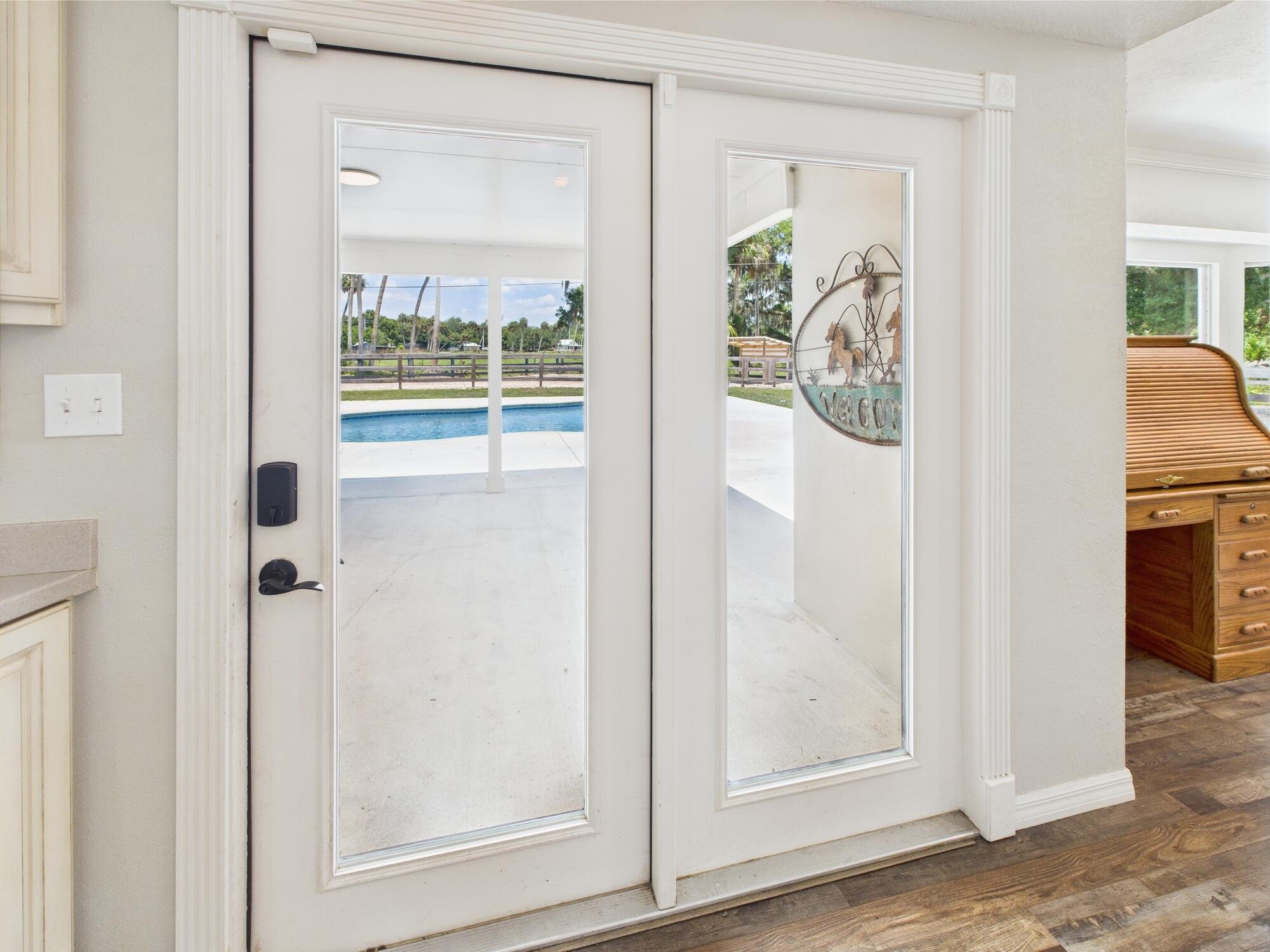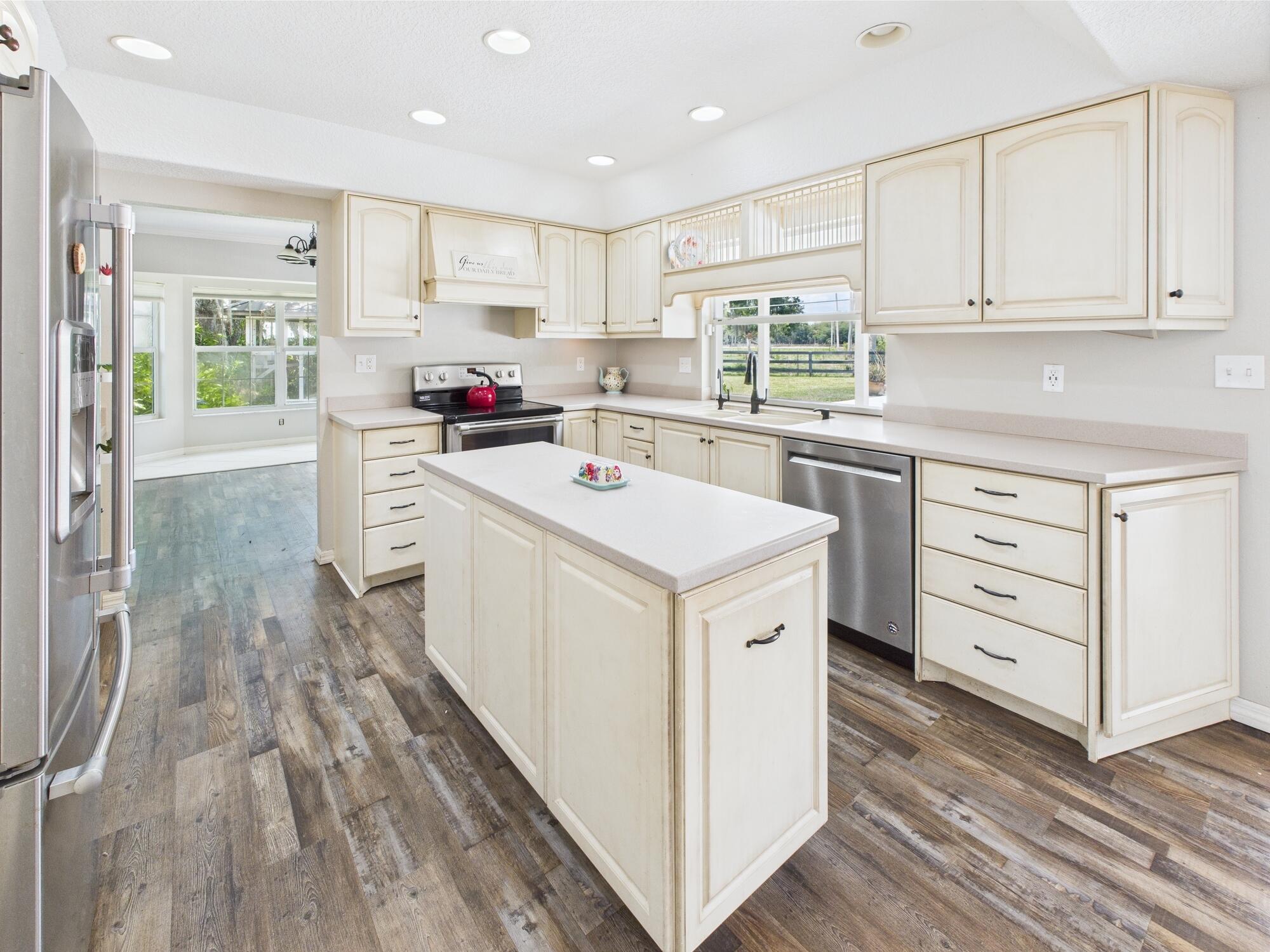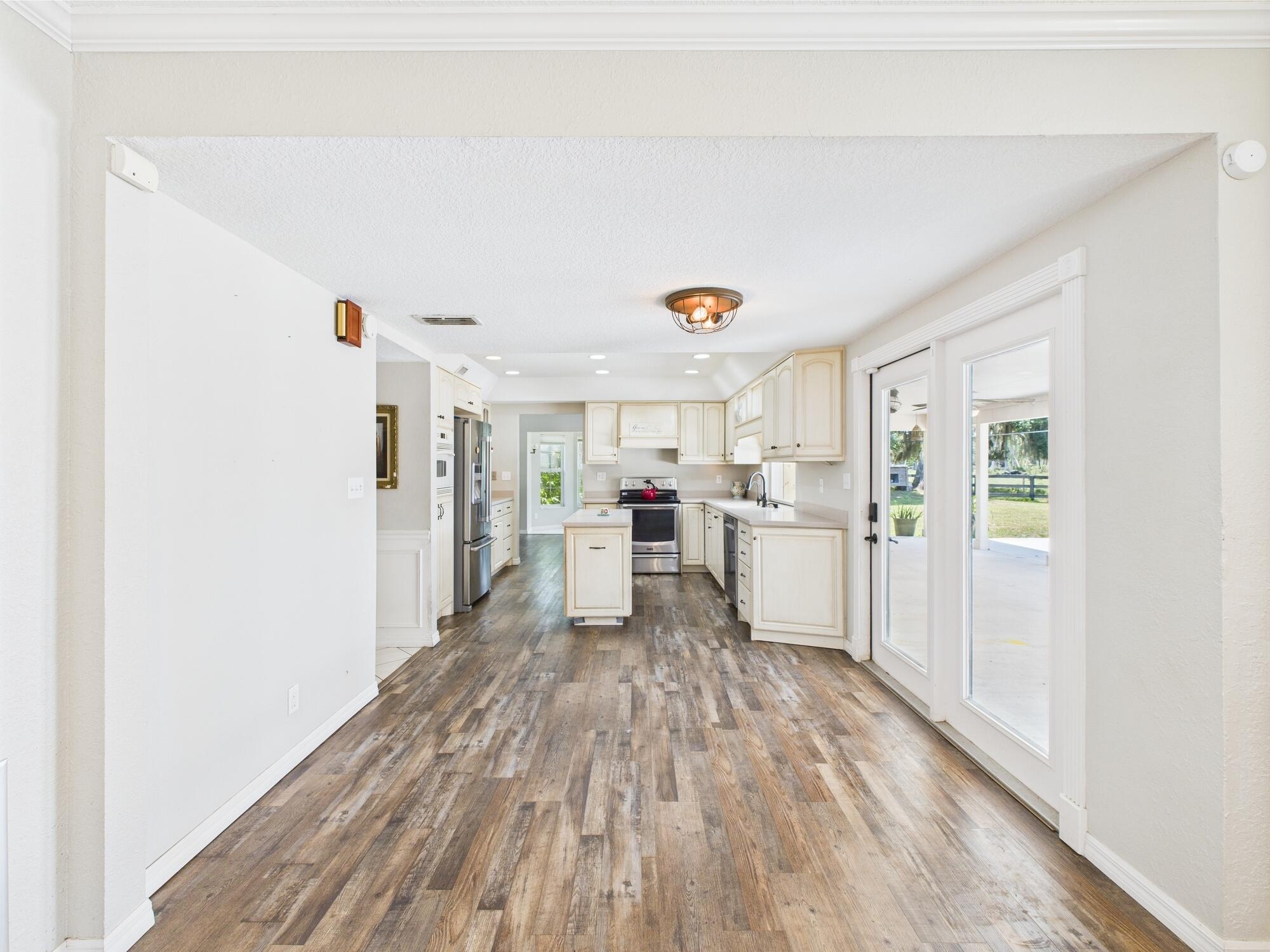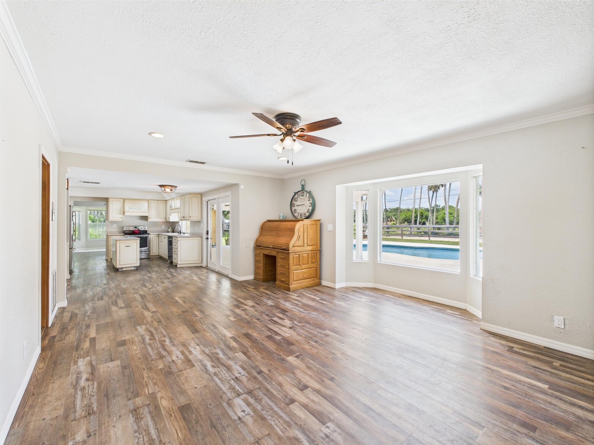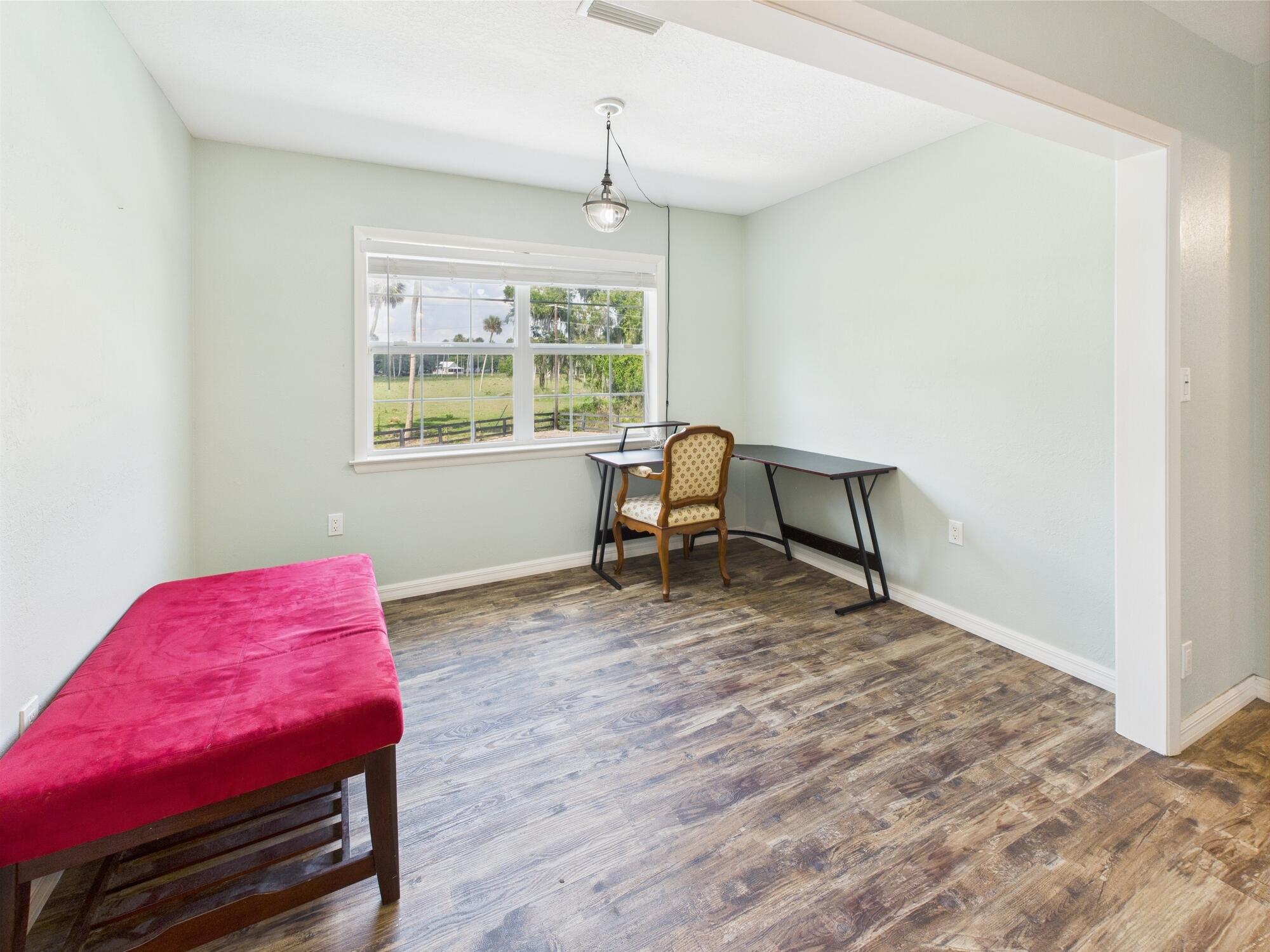 Tucked away on a cul-de-sac in Okeechobee's desirable southwest section, this one-of-a-kind 3BD/2BA two-story home sits on four lots with 2,863 sq. ft. of living space with 5,578 total sq. ft. It features a spacious master suite, formal foyer, living and dining rooms, a chef's kitchen with breezeway window, and a cozy family room with a stone fireplace. The main house has an attached two-car garage, plus there's a massive 2,200 sq. ft. detached garage with a finished office and a partially finished bathroom. Enjoy the NEW 2022 heated pool, two stables, a winding paddock, impact windows upstairs and shutters down, and plenty of room for all your toys.