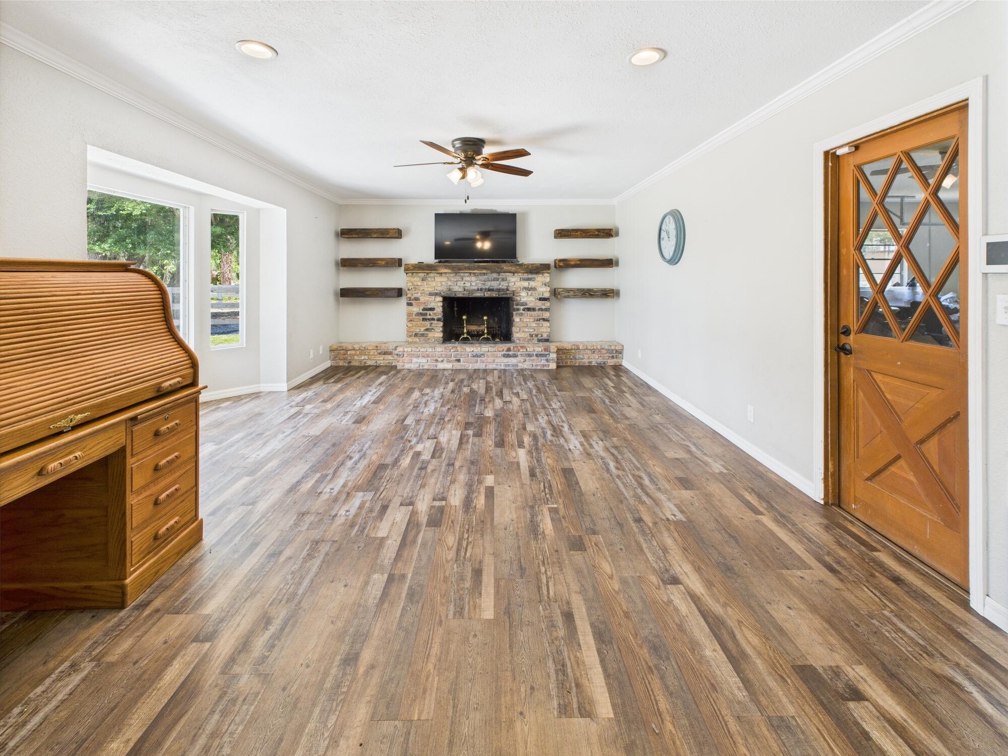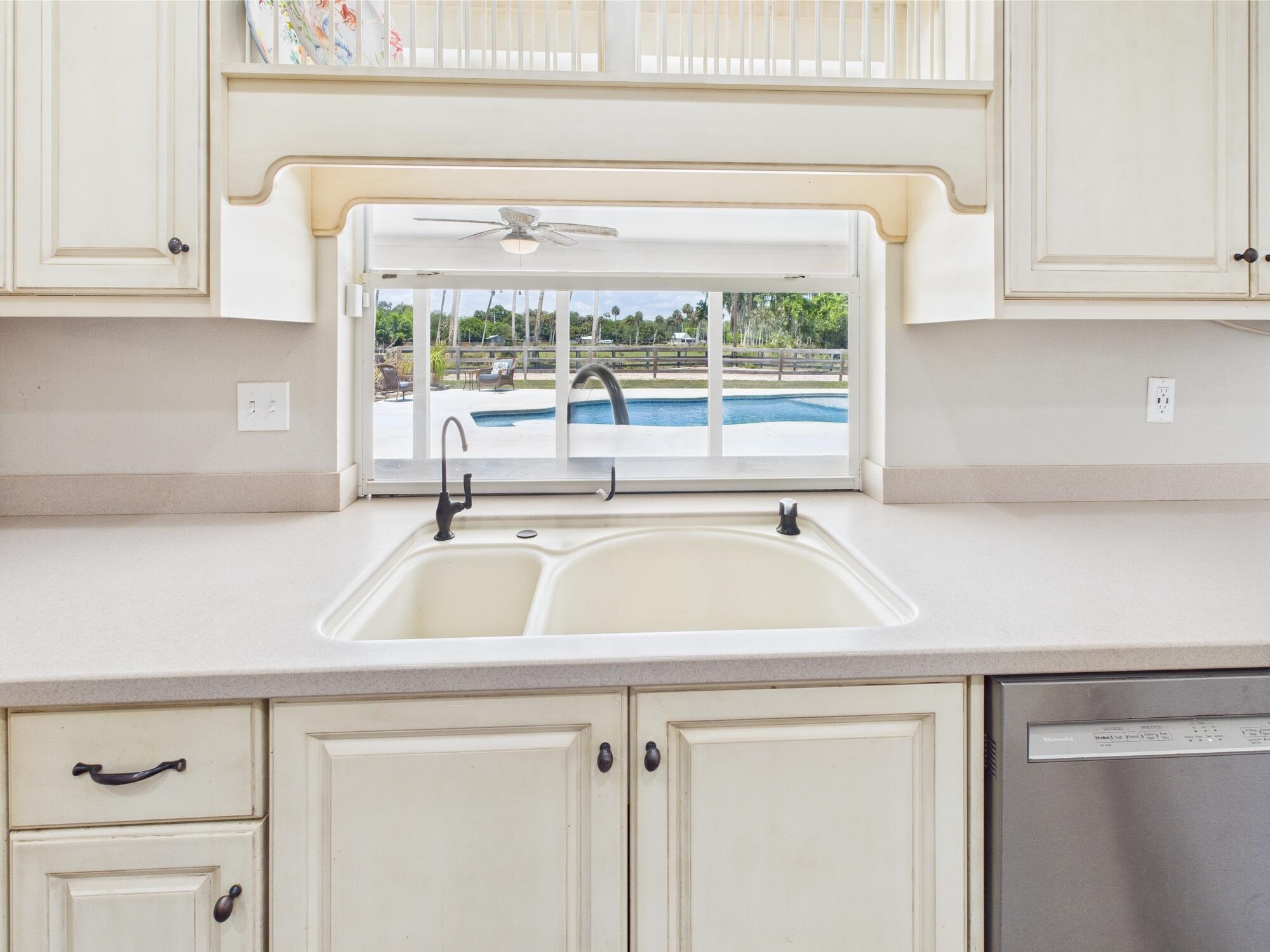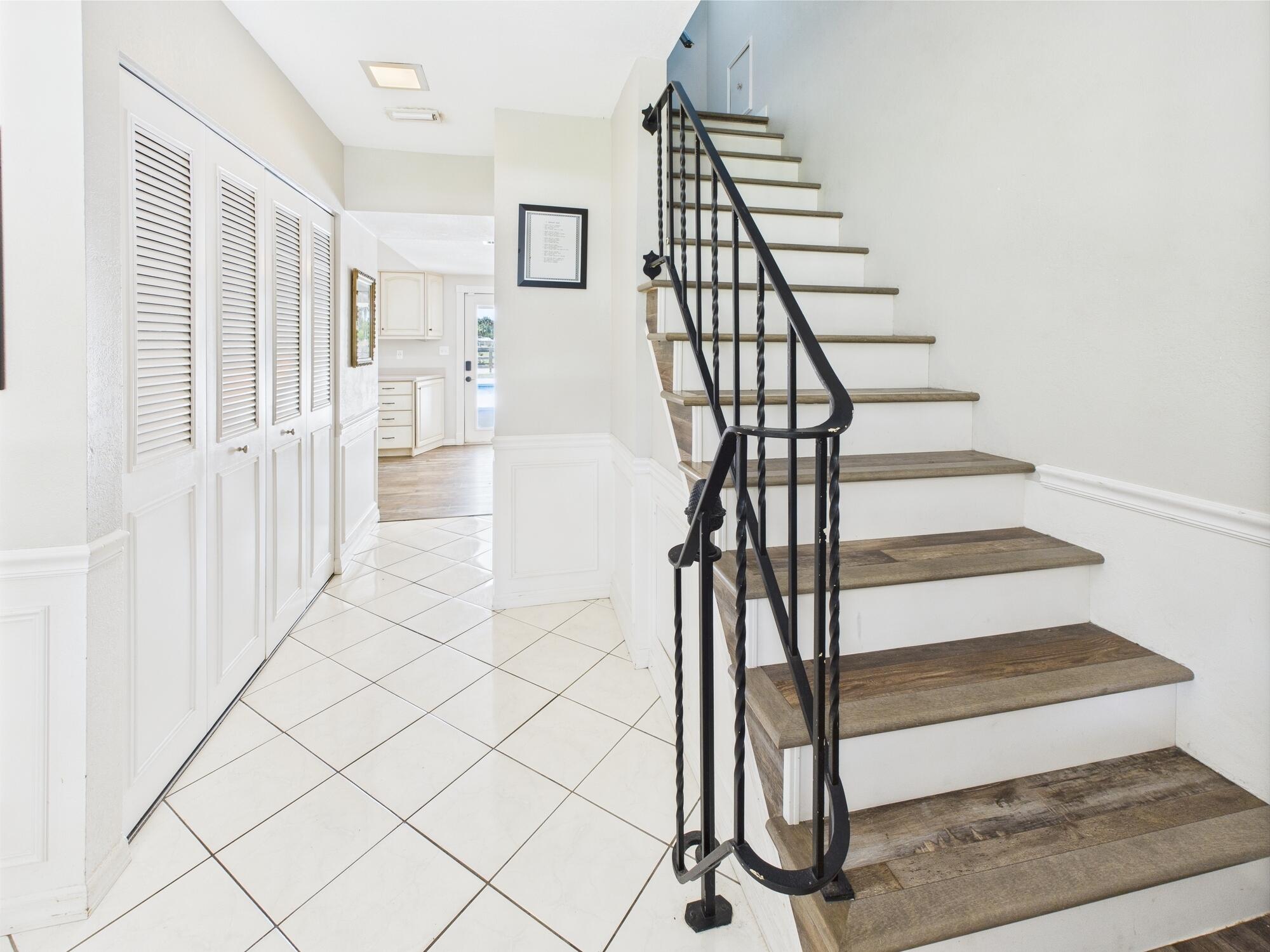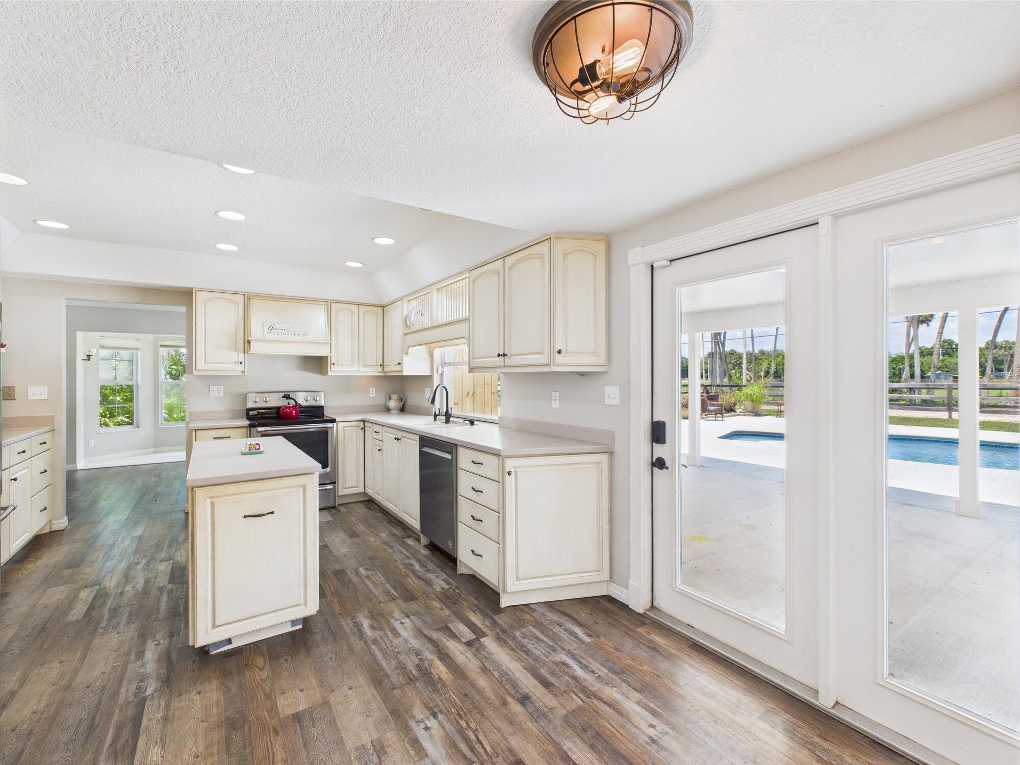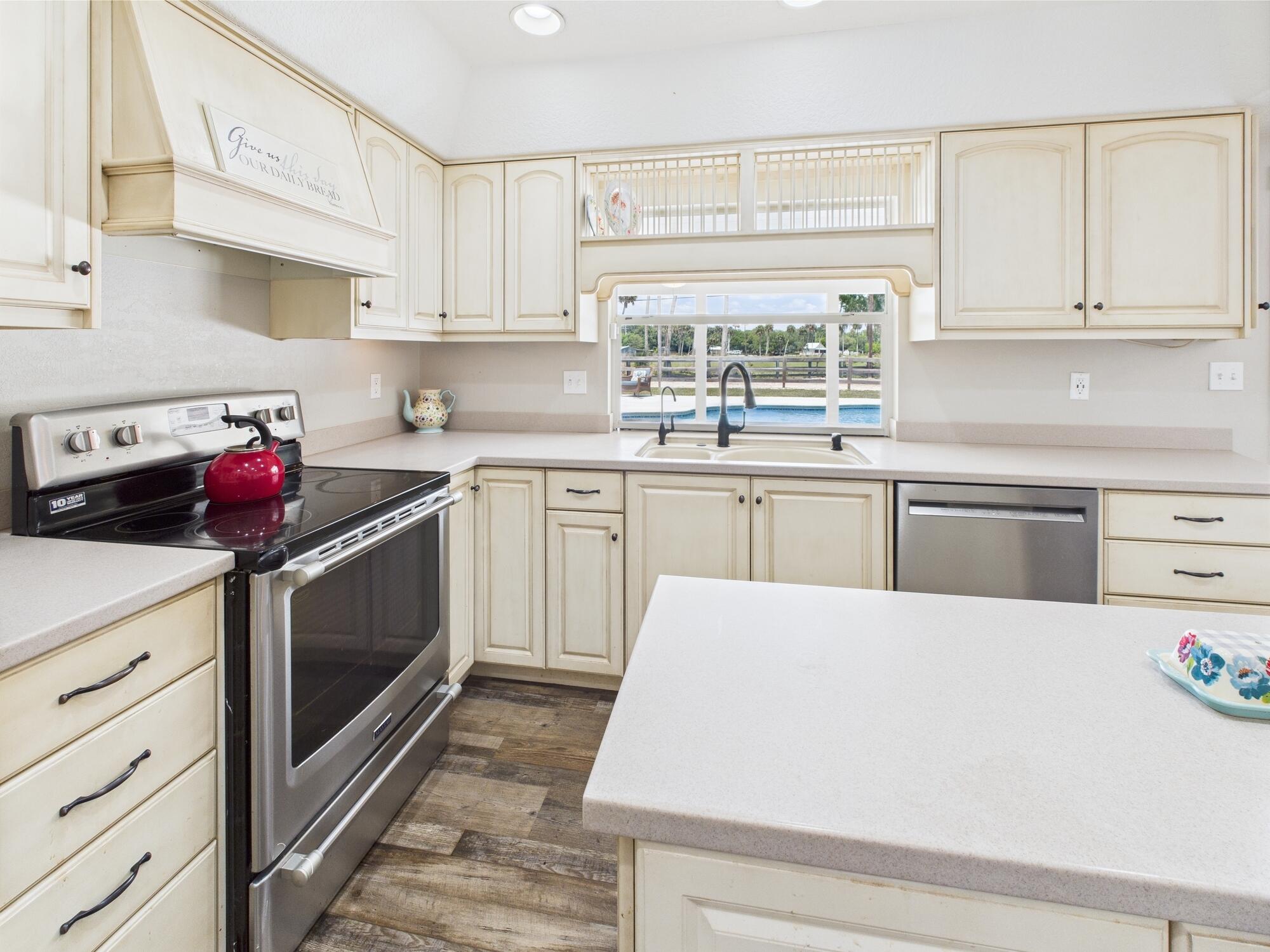 Tucked away on a cul-de-sac in Okeechobee's desirable southwest section, this one-of-a-kind 3BD/2BA two-story home sits on four lots with 2,863 sq. ft. of living space with 5,578 total sq. ft. It features a spacious master suite, formal foyer, living and dining rooms, a chef's kitchen with breezeway window, and a cozy family room with a stone fireplace. The main house has an attached two-car garage, plus there's a massive 2,200 sq. ft. detached garage with a finished office and a partially finished bathroom. Enjoy the NEW 2022 heated pool, two stables, a winding paddock, impact windows upstairs and shutters down, and plenty of room for all your toys.