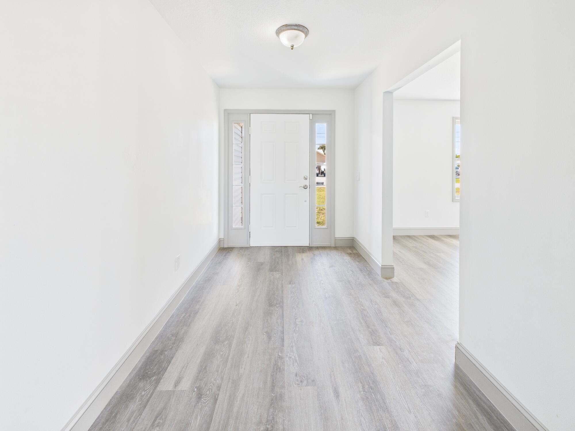 Completely remodeled waterfront home! This spacious 3BD/2BA, 1,800 sq. ft. living (2,500+ total) features brand-new closed cell spray foam insulation underneath, new subfloors, new waterproof premium vinyl plank, new outlets, new switches, new light fixtures, new baseboards & fresh paint. Gorgeous new kitchen with solid wood cabinets, granite counters & stainless appliances. Master suite offers a walk-in shower, Jacuzzi tub & dual sinks. All bedrooms have walk-in closets. Extras: home office/storage, formal dining, laundry room, newer roof & AC, accordion shutters, 28x21 garage w/ dual automatic doors, fenced backyard w/ patio, utility shed & mango tree. Peaceful 15-acre pond view with great fishing, no HOA, and close to town conveniences! OWNER/AGENT