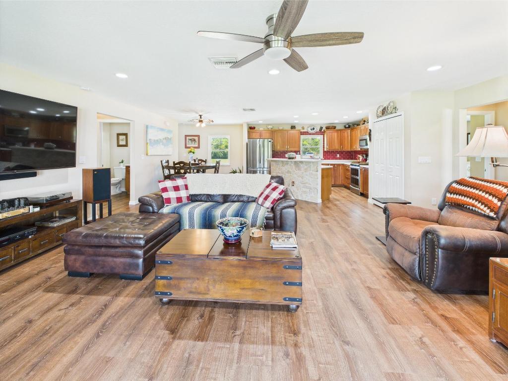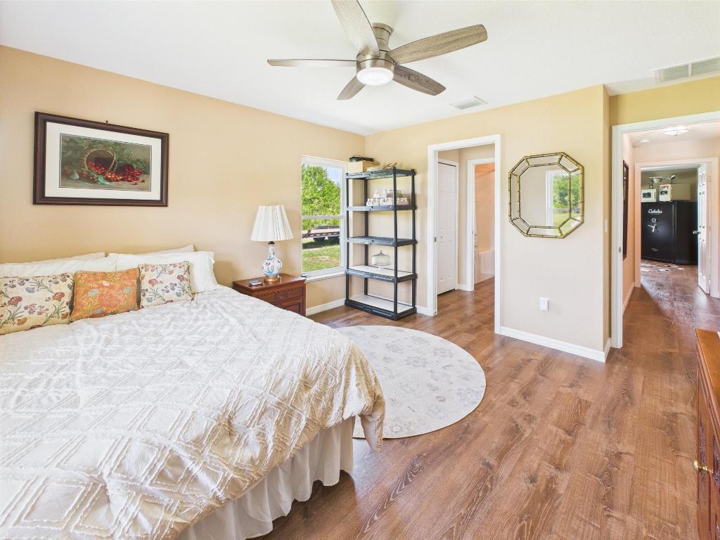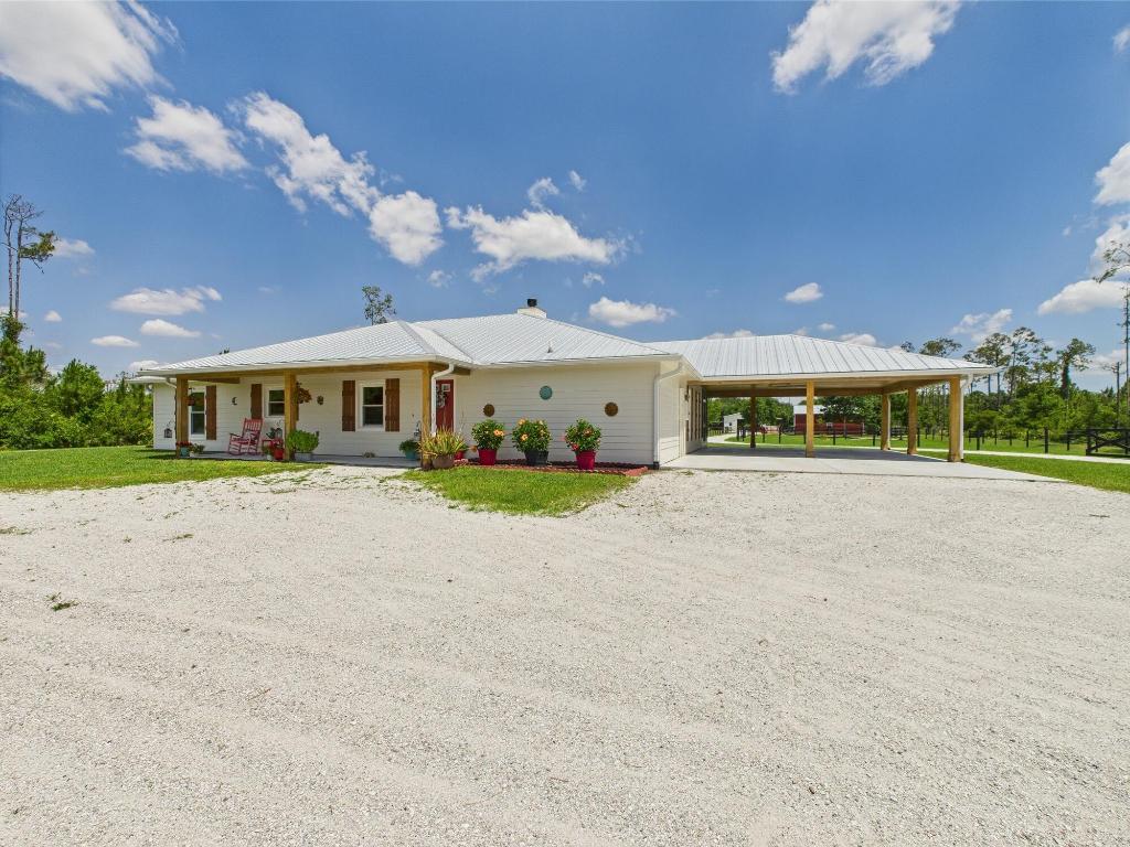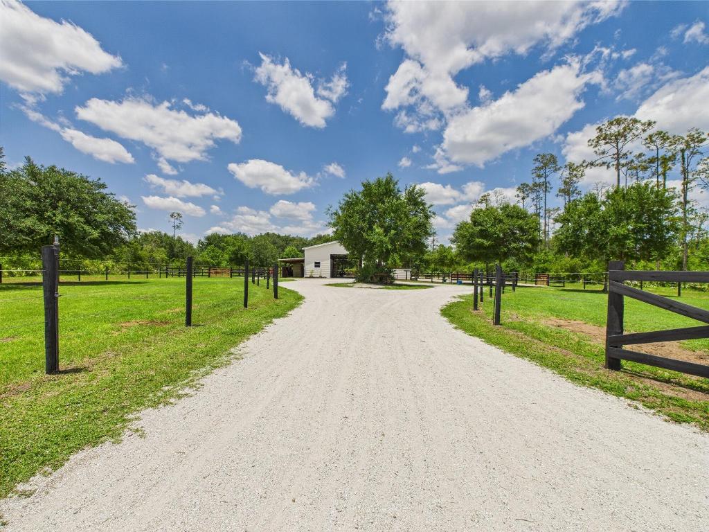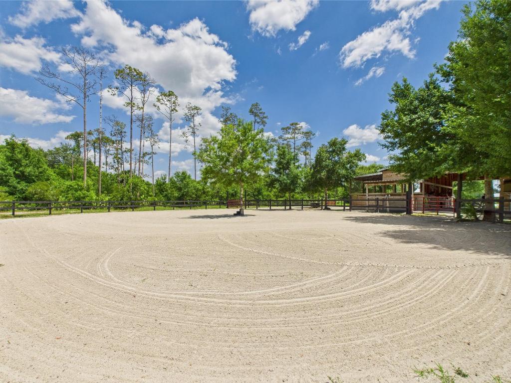 Horse Enthusiasts Dream! Custom Home on 5+ acres in a gated community that is truly a Hidden Gem. This 3/3 is perfectly laid out with Modern Design and Rustic Charm. Enjoy the peaceful view on the screened in porch with tongue and groove ceilings. The Serenity offered on this 5.16 acre property will make you want to stay. This Pristine property has large 6 stall horse barn, tack room, 2 wash/grooming stations, 4 engineered paddocks and arena, and access to hundreds of miles of riding trails with the push of the button. Indian Hammock has over 3,000 acres of land with a private landing strip/hangar, lodge w restaurant and pool, hunting, skeet shooting, rifle range, tennis/pickleball courts, over 100 miles of trails, and so much more!