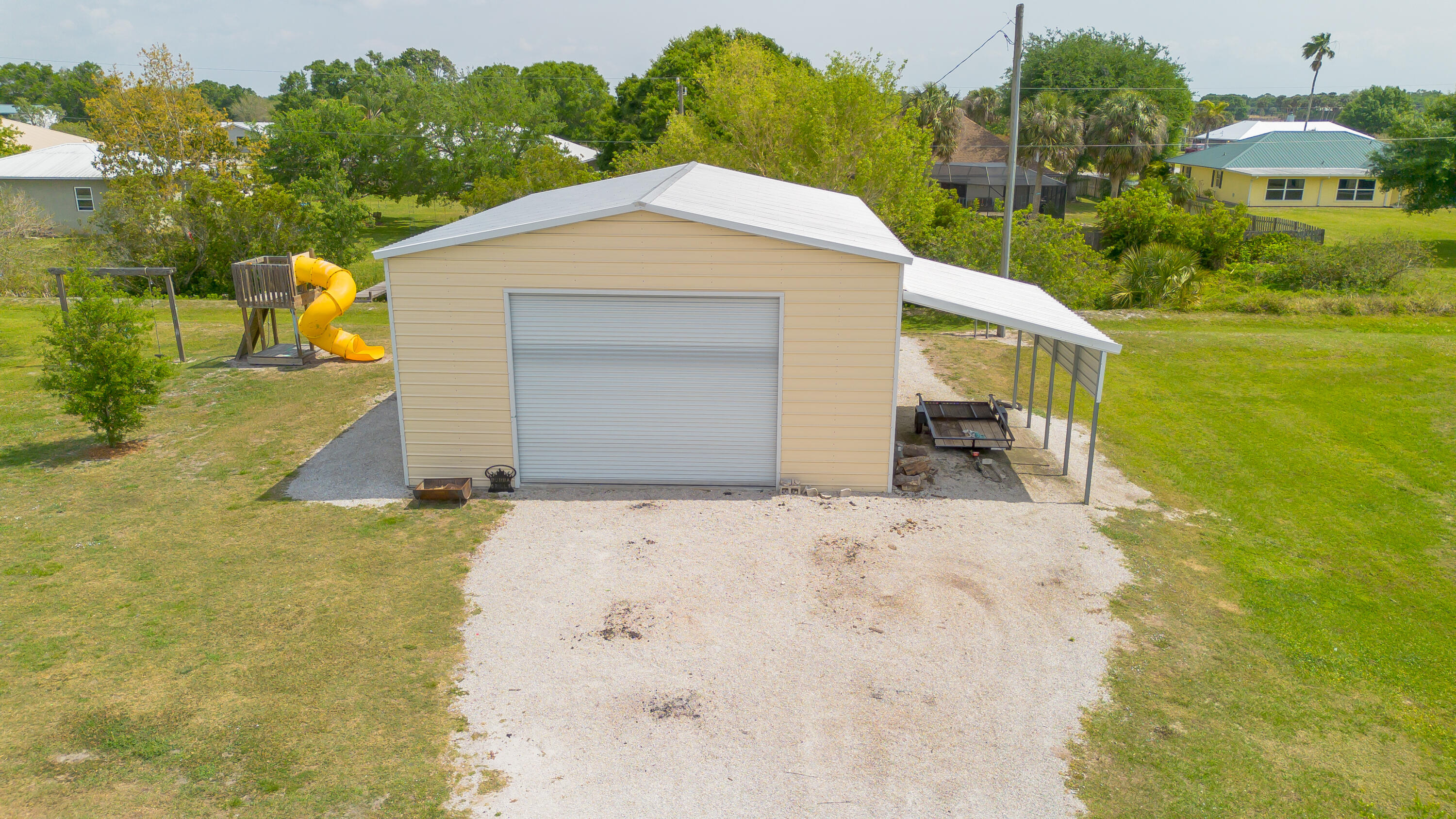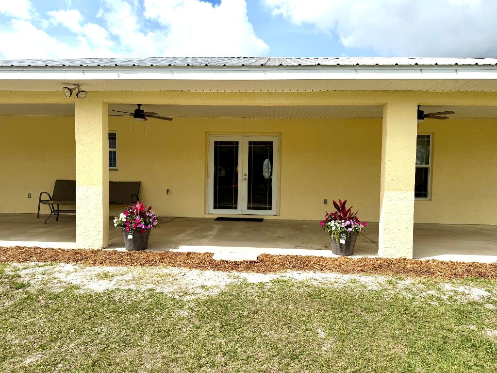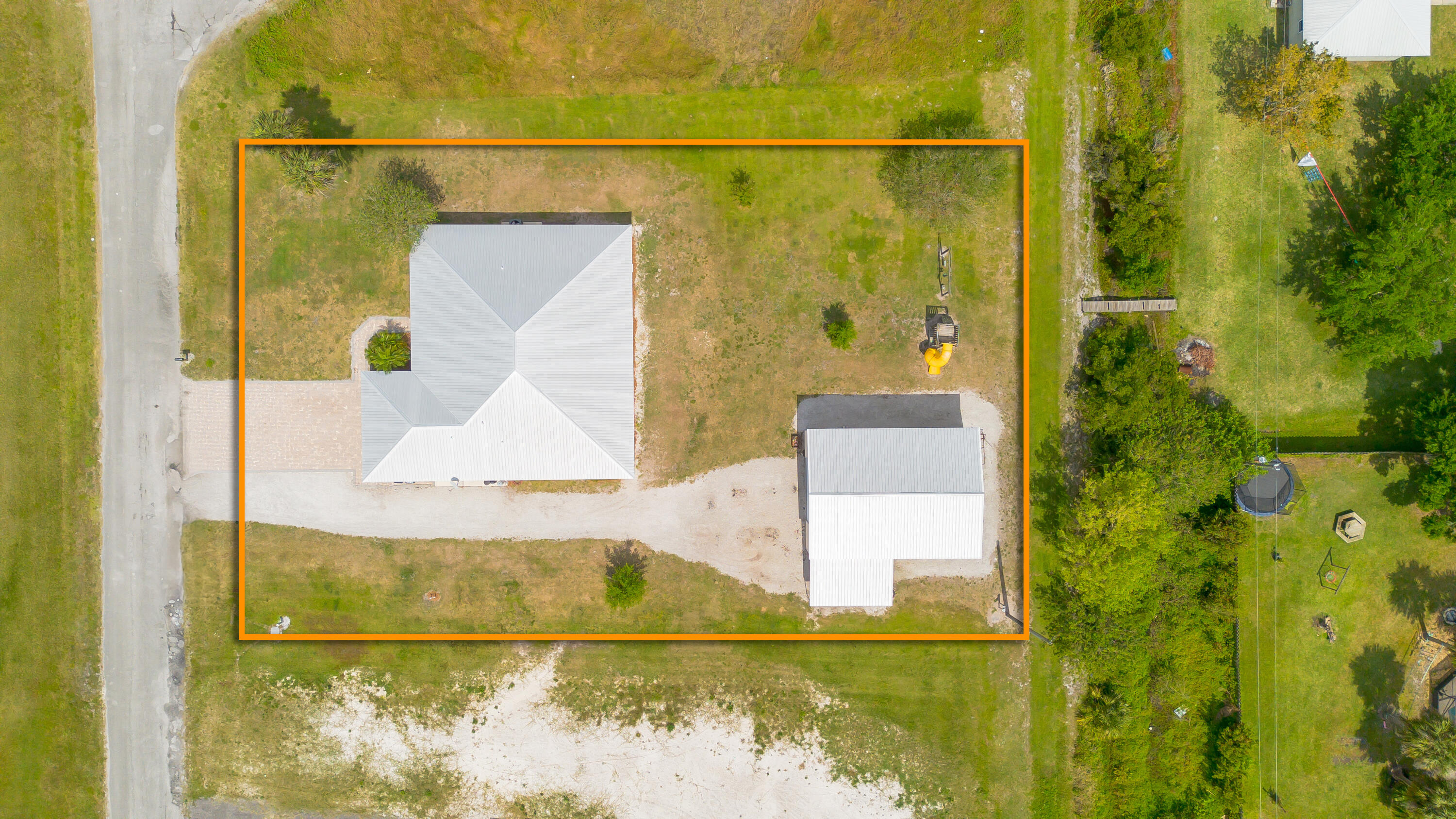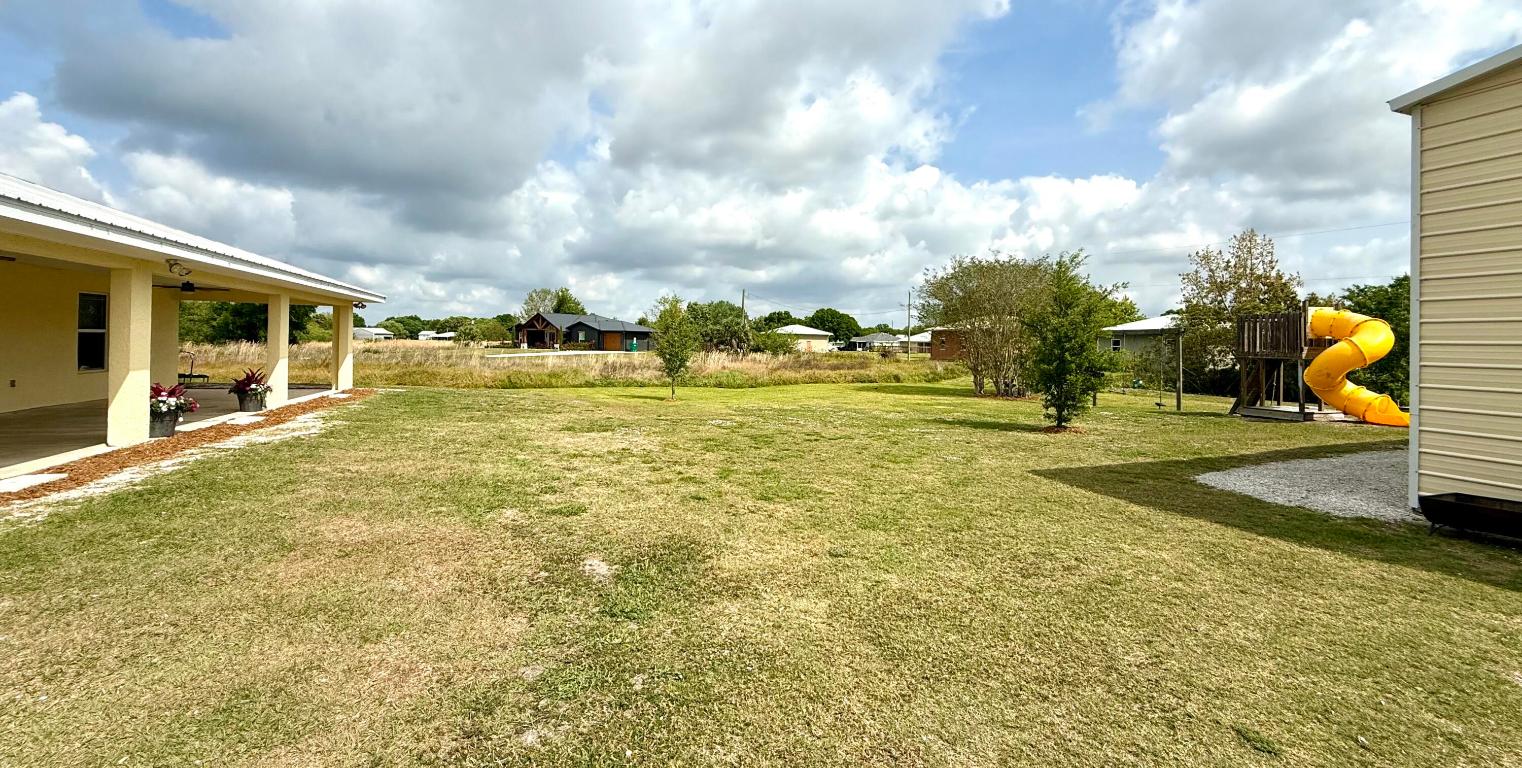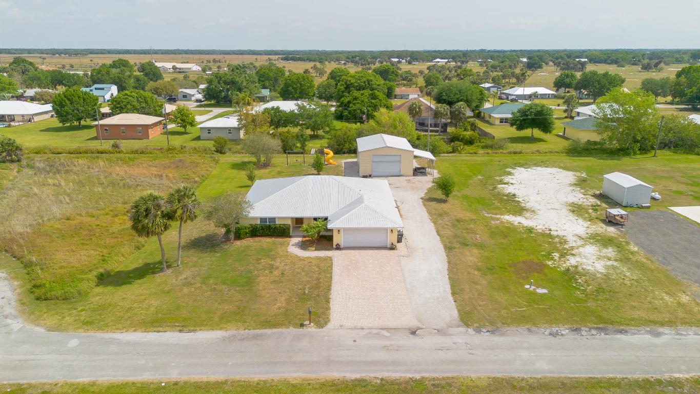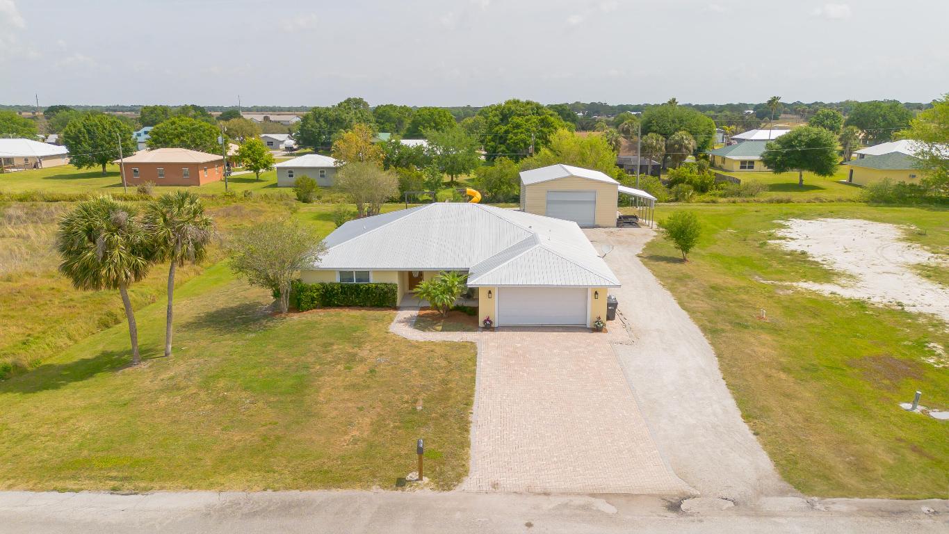 Situated on a half-acre lot, this property boasts 4 bedrooms and 2 bathrooms. The interior features beautiful hickory cabinets complemented by durable Corian countertops. With 1,871 square feet of living space within a total of 3,127 square feet, there's plenty of room for family and guests. The open-concept, split floor plan offers both convenience and privacy. On one side, you'll find 3 bedrooms and a full bath, while the other side features a master suite with an oversized bathroom designed for relaxation, including a walk-in shower and a large Jacuzzi tub. French doors from the master suite open onto a generous 57x12 covered back patio, overlooking the backyard and a 40x30 metal shop with a canopy overhang. The expansive family and dining area, located at the heart of the home, also provides access to the back patio through French doors, perfect for entertaining and enjoying the outdoor space.