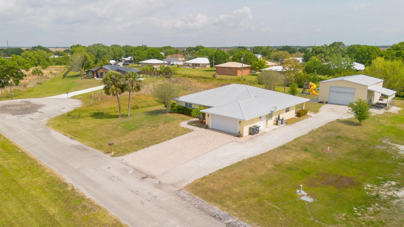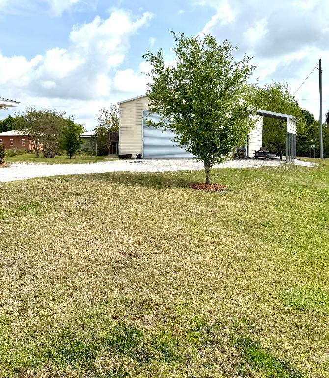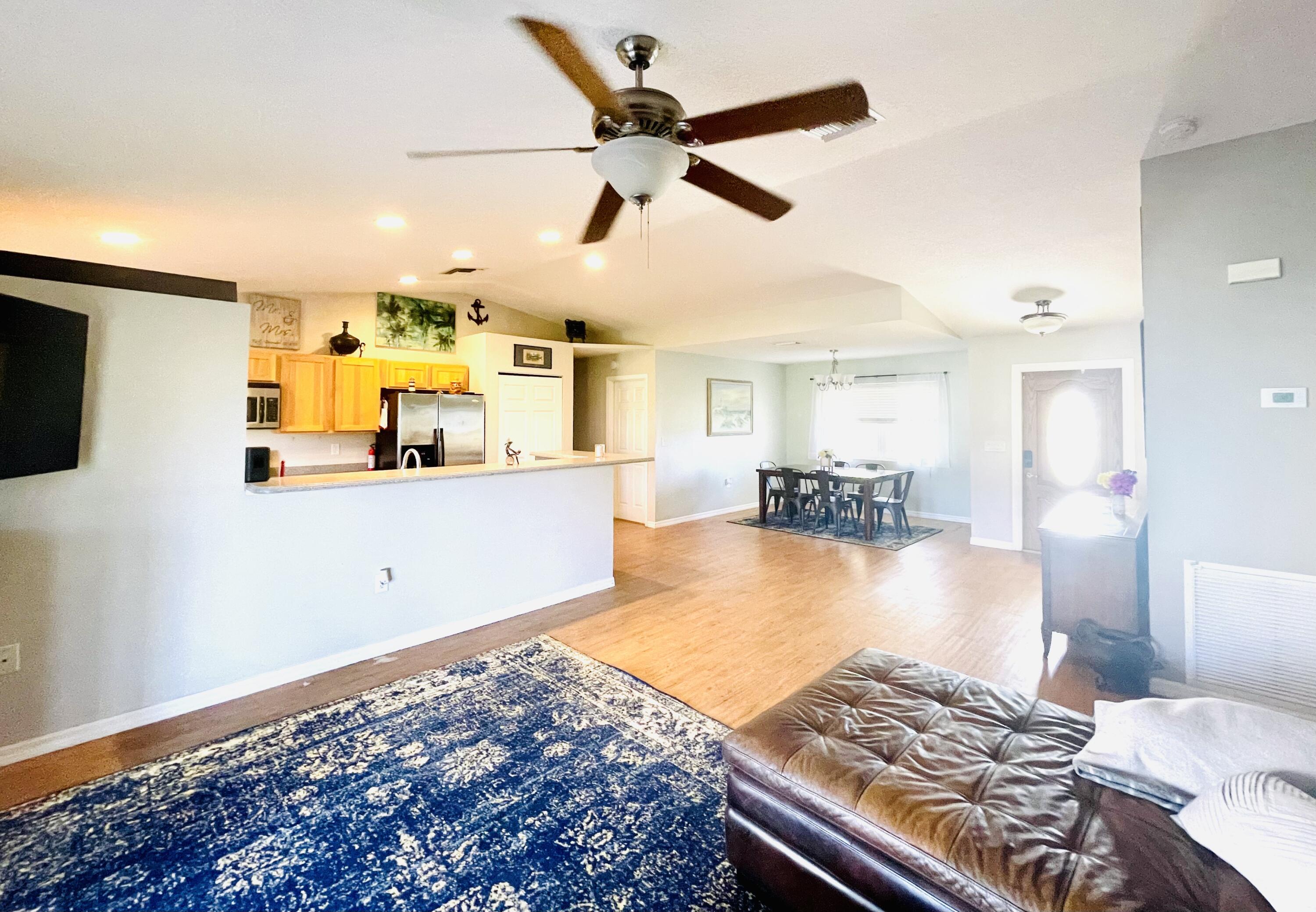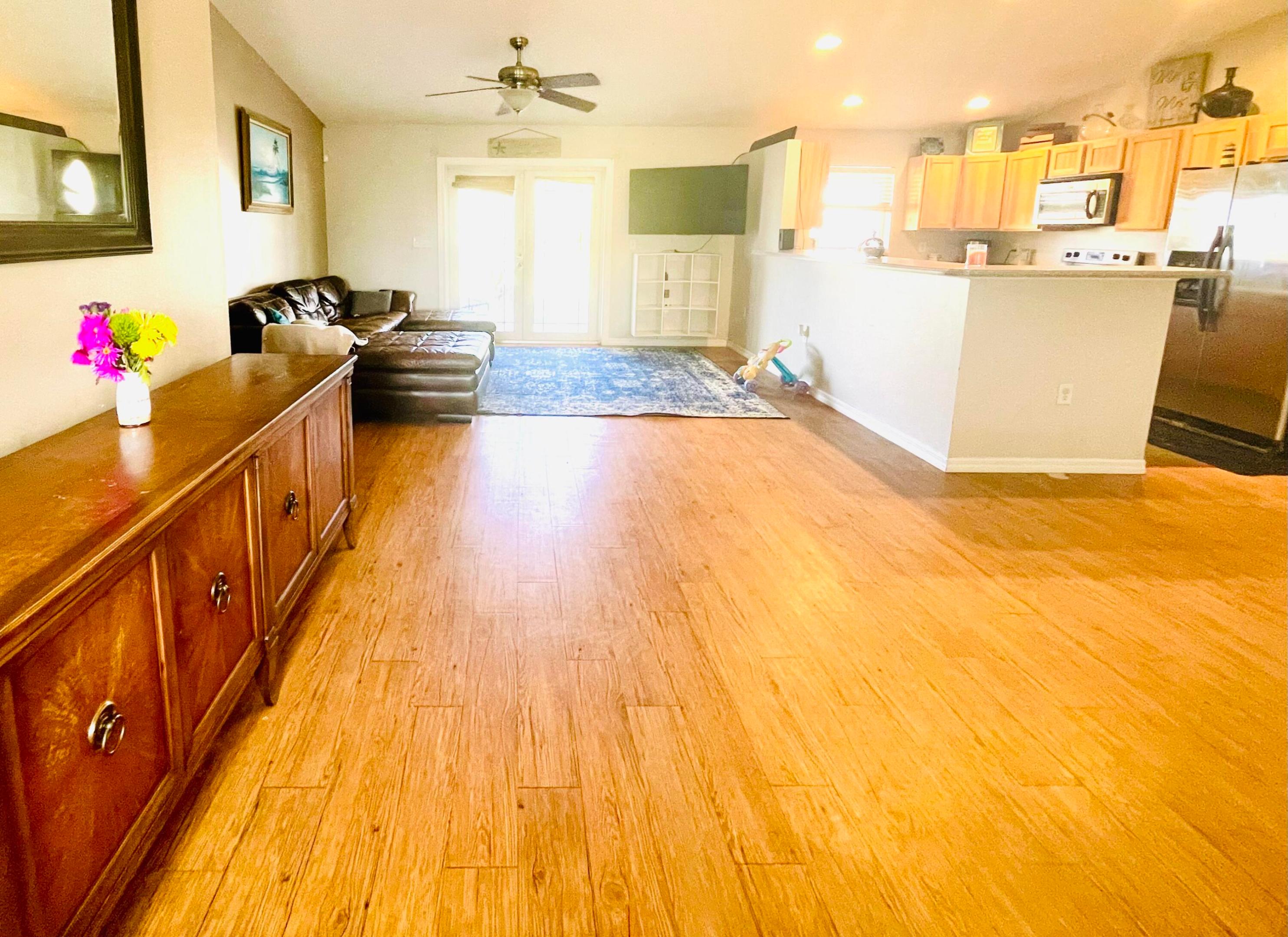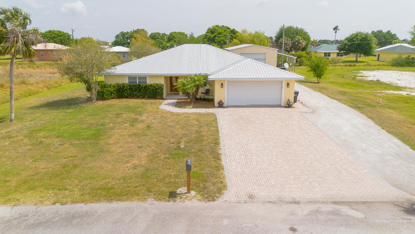 Situated on a half-acre lot, this property boasts 4 bedrooms and 2 bathrooms. The interior features beautiful hickory cabinets complemented by durable Corian countertops. With 1,871 square feet of living space within a total of 3,127 square feet, there's plenty of room for family and guests. The open-concept, split floor plan offers both convenience and privacy. On one side, you'll find 3 bedrooms and a full bath, while the other side features a master suite with an oversized bathroom designed for relaxation, including a walk-in shower and a large Jacuzzi tub. French doors from the master suite open onto a generous 57x12 covered back patio, overlooking the backyard and a 40x30 metal shop with a canopy overhang. The expansive family and dining area, located at the heart of the home, also provides access to the back patio through French doors, perfect for entertaining and enjoying the outdoor space.