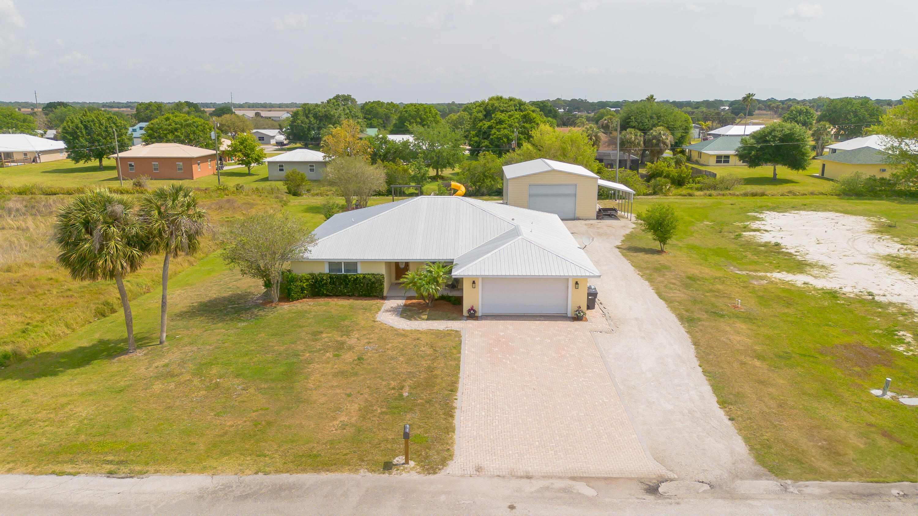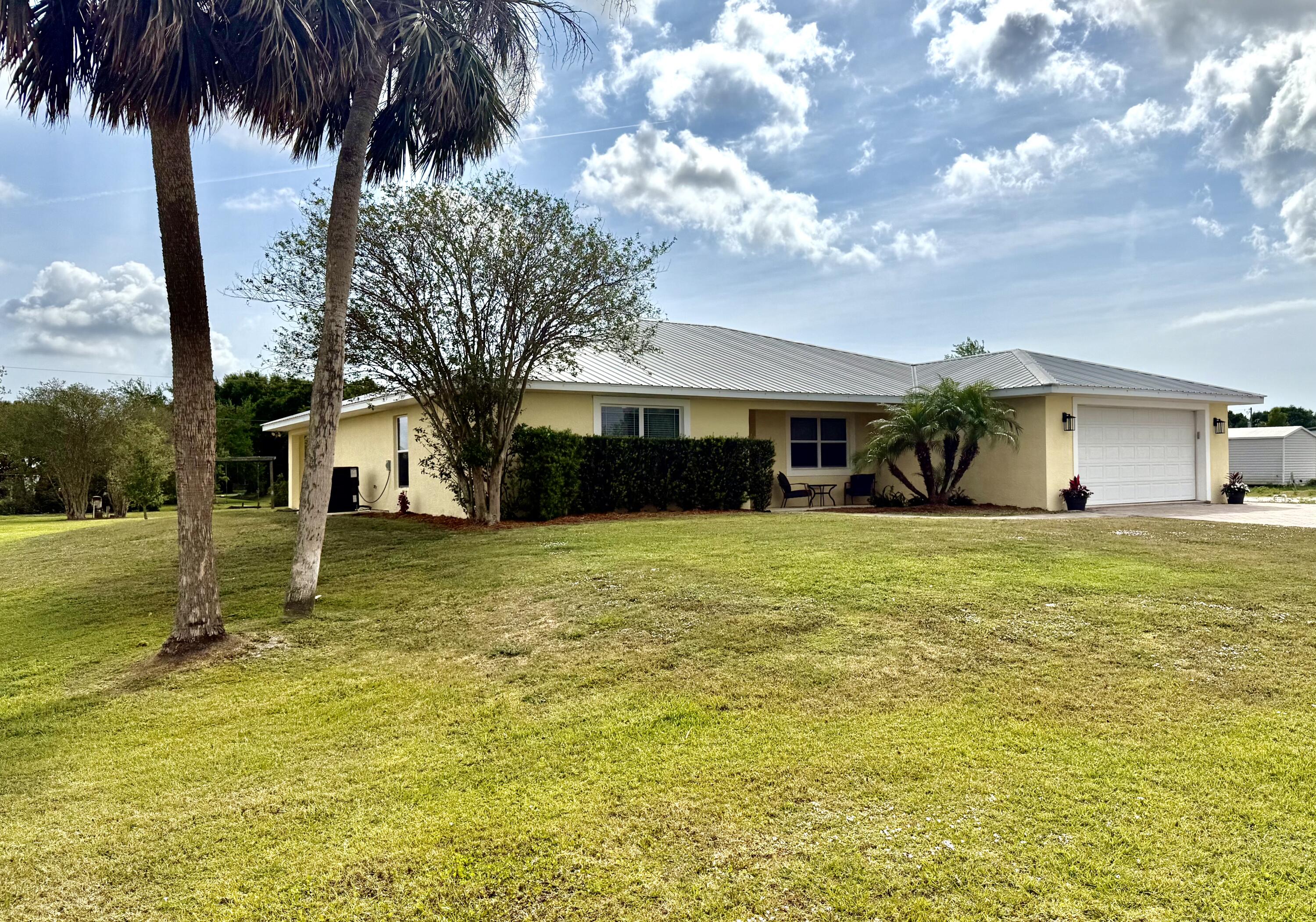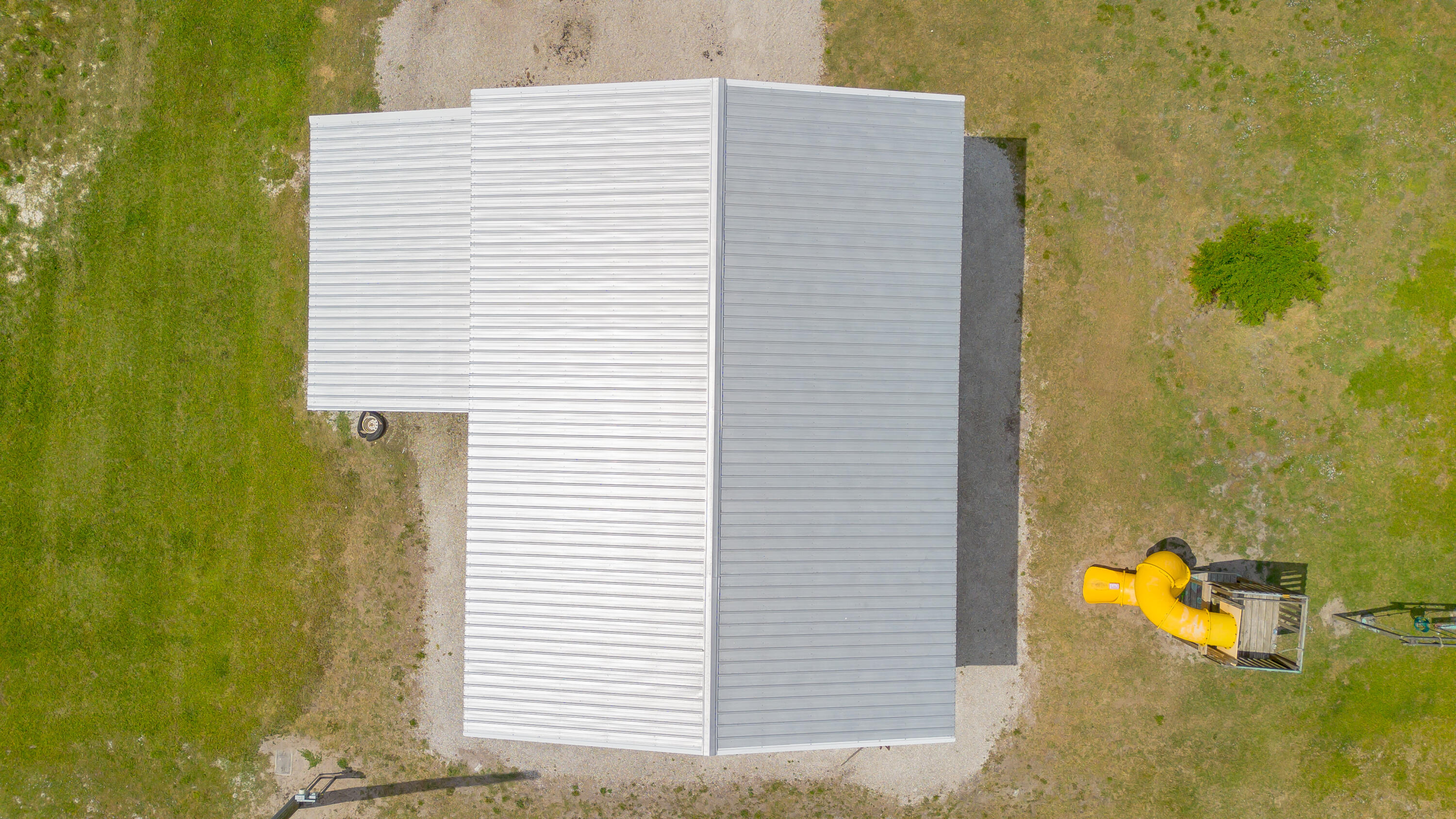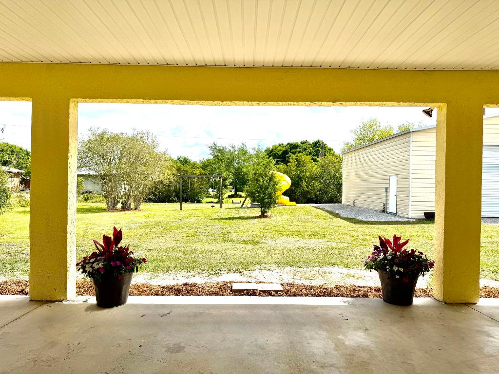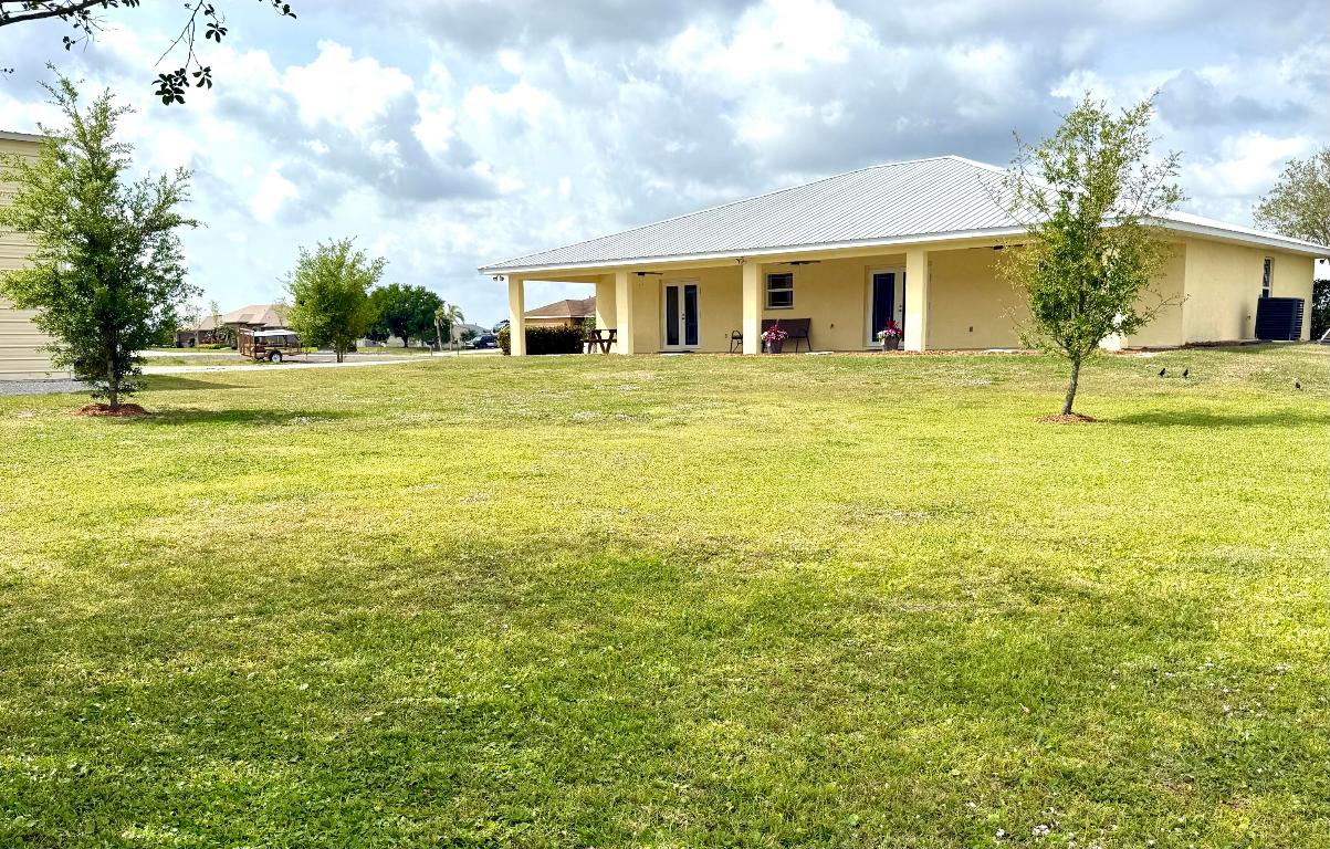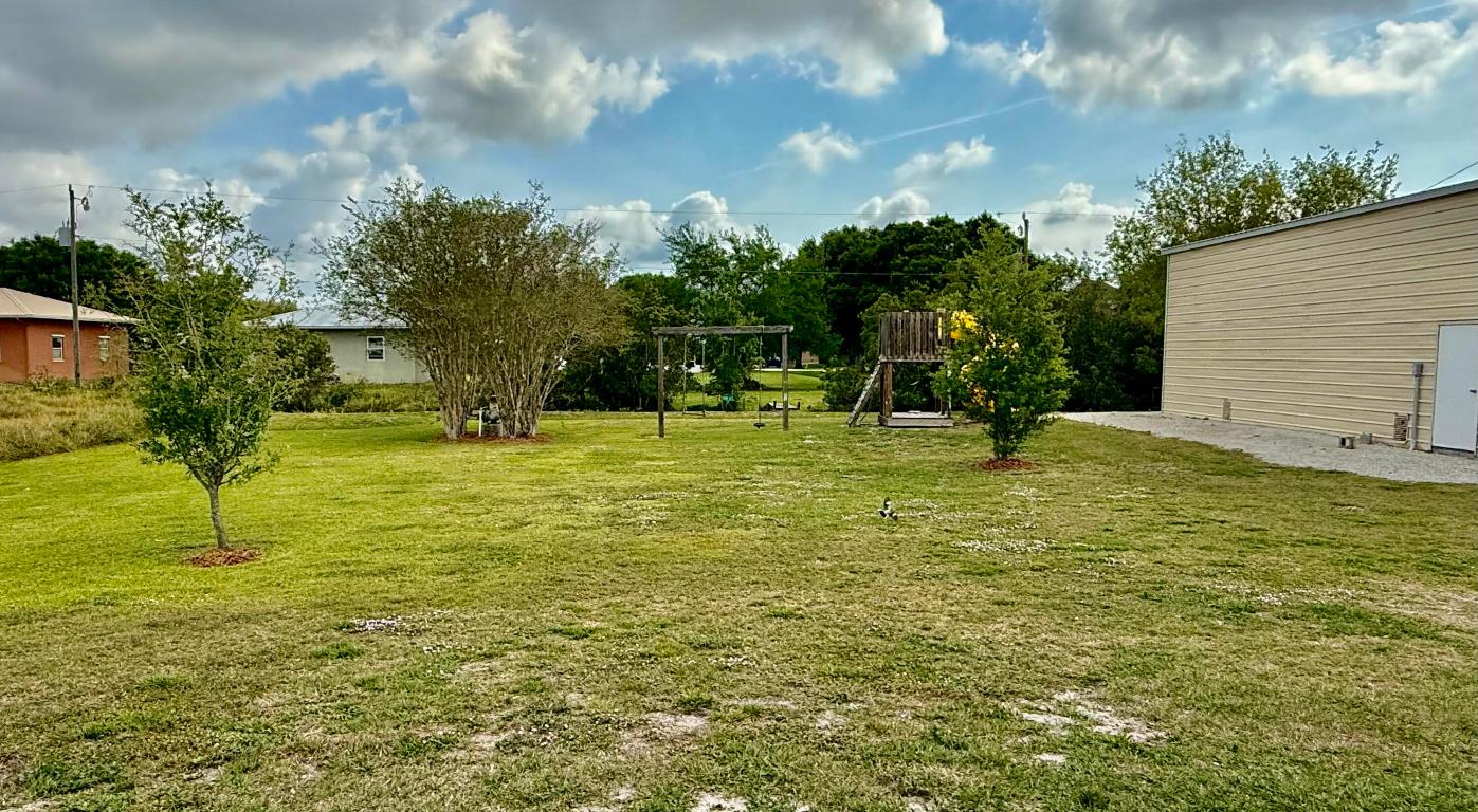 Situated on a half-acre lot, this property boasts 4 bedrooms and 2 bathrooms. The interior features beautiful hickory cabinets complemented by durable Corian countertops. With 1,871 square feet of living space within a total of 3,127 square feet, there's plenty of room for family and guests. The open-concept, split floor plan offers both convenience and privacy. On one side, you'll find 3 bedrooms and a full bath, while the other side features a master suite with an oversized bathroom designed for relaxation, including a walk-in shower and a large Jacuzzi tub. French doors from the master suite open onto a generous 57x12 covered back patio, overlooking the backyard and a 40x30 metal shop with a canopy overhang. The expansive family and dining area, located at the heart of the home, also provides access to the back patio through French doors, perfect for entertaining and enjoying the outdoor space.