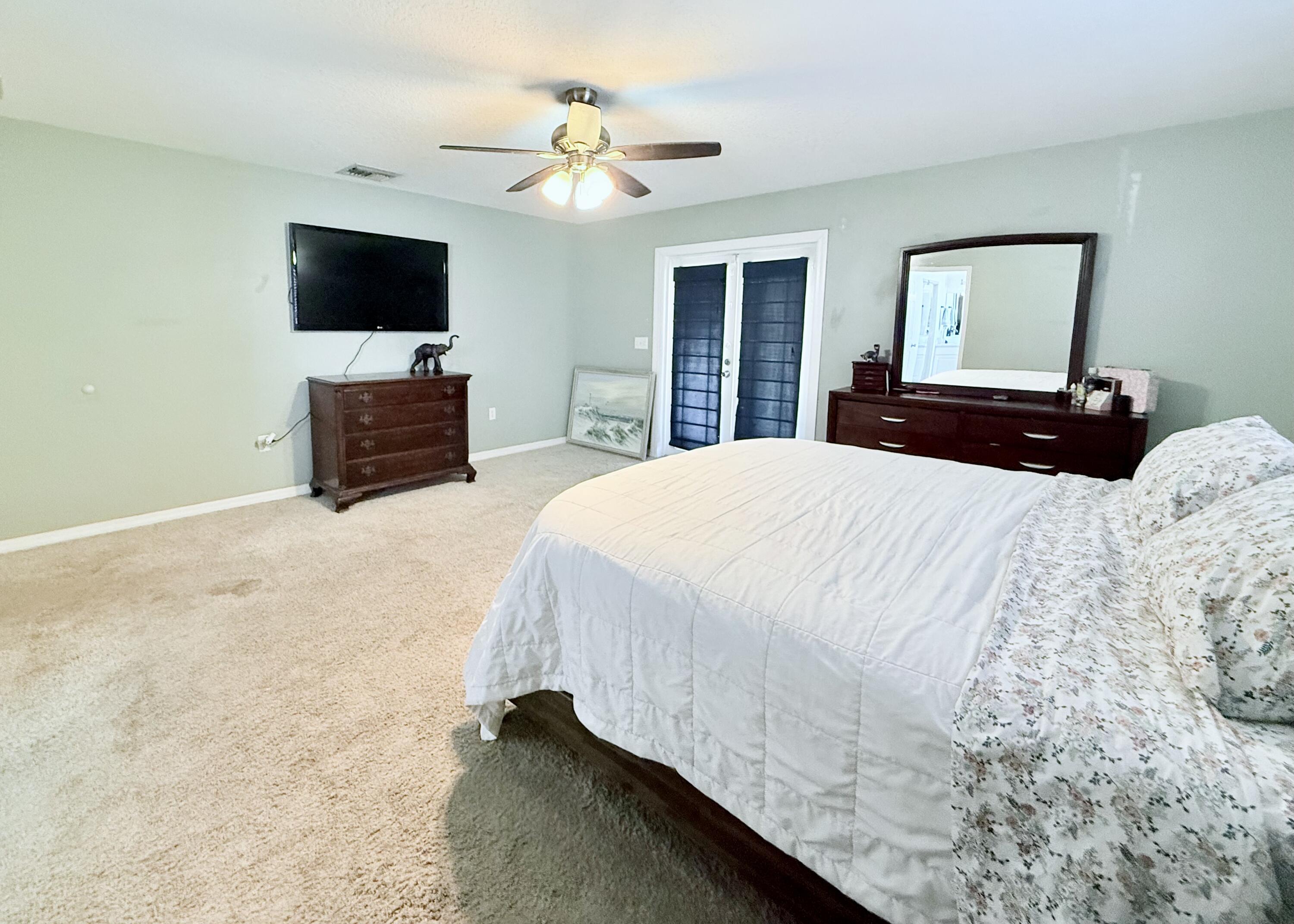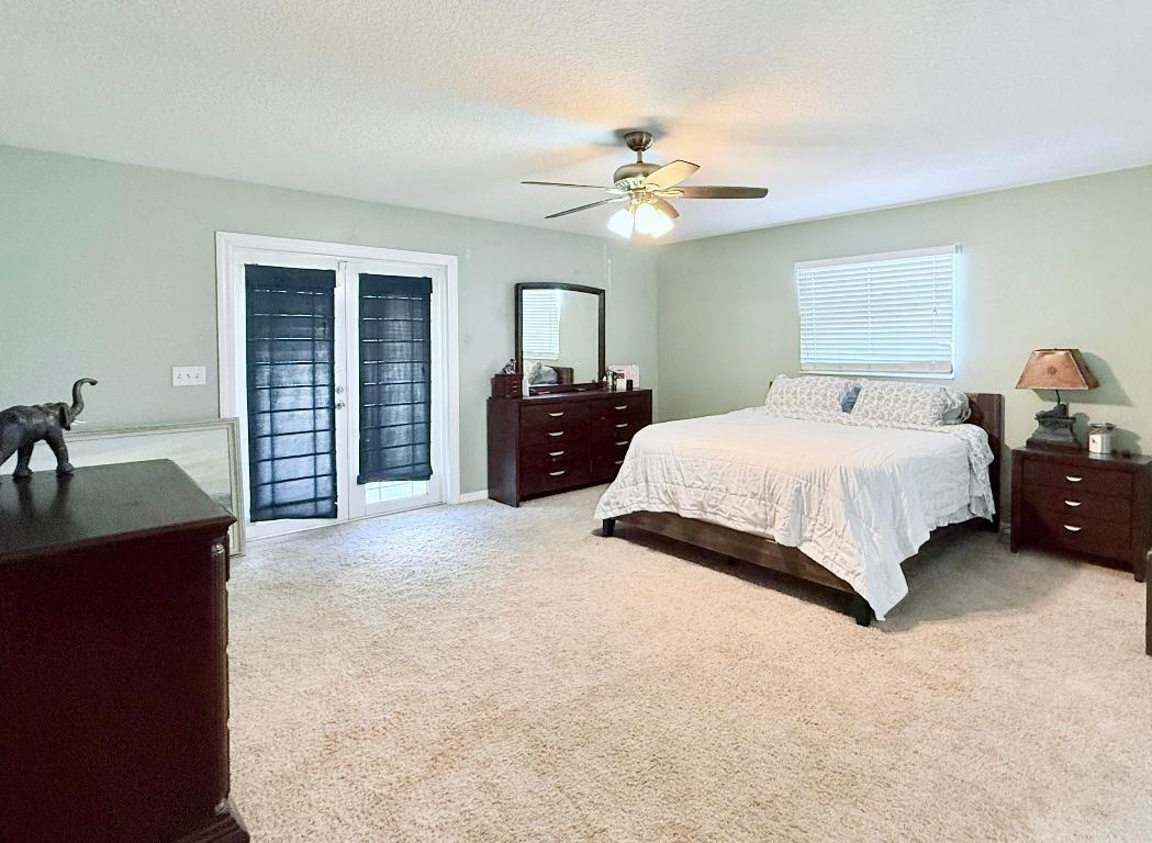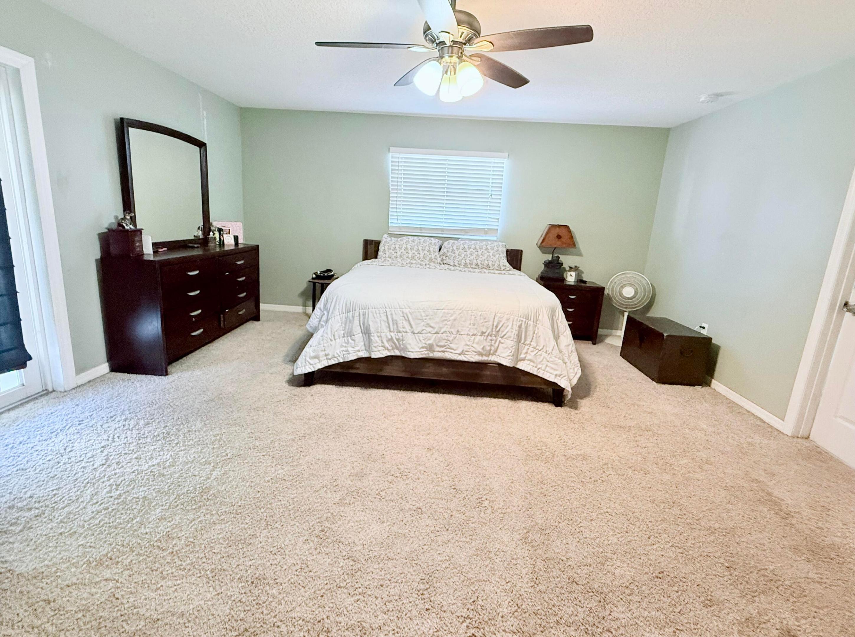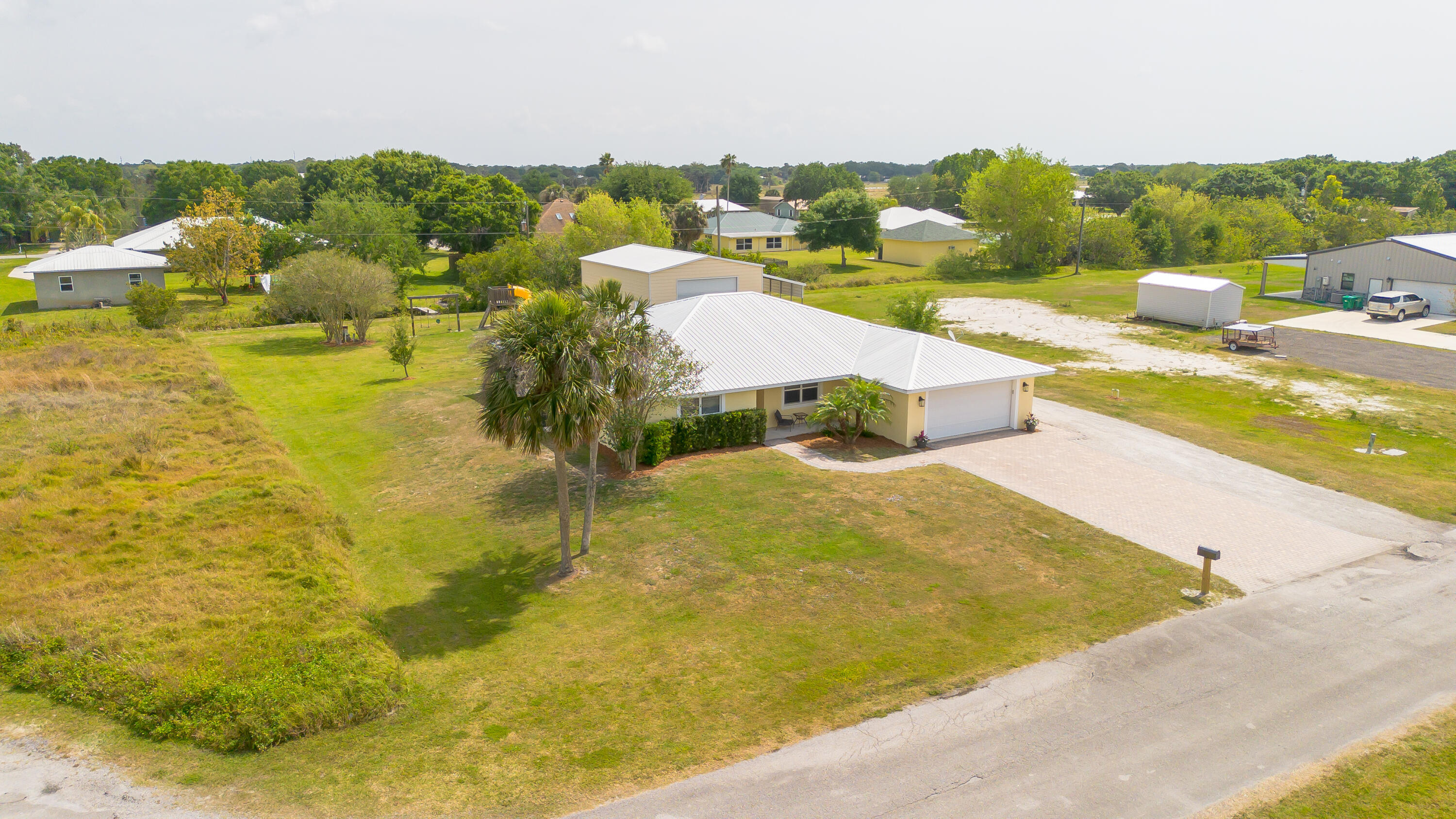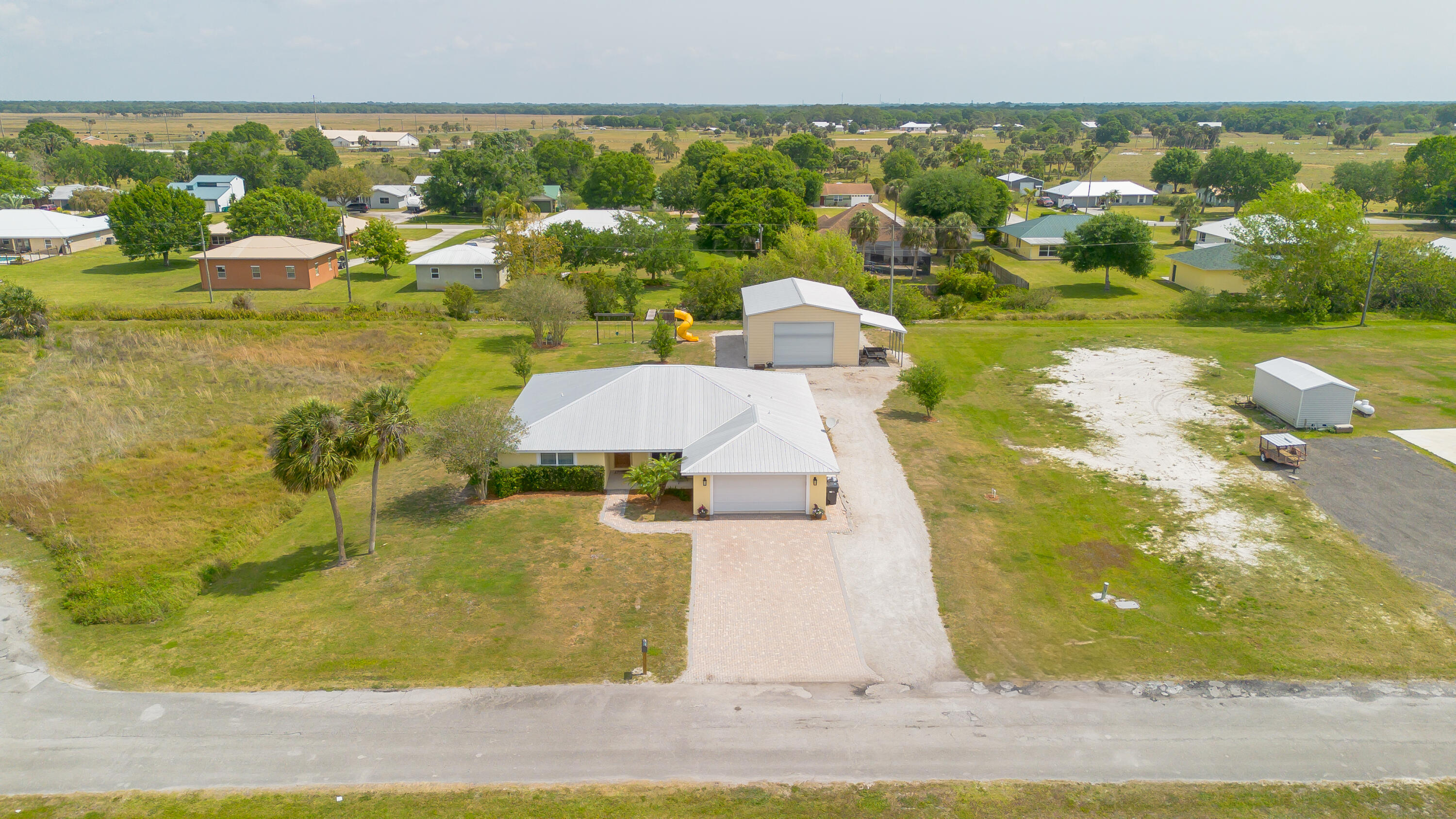 Situated on a half-acre lot, this property boasts 4 bedrooms and 2 bathrooms. The interior features beautiful hickory cabinets complemented by durable Corian countertops. With 1,871 square feet of living space within a total of 3,127 square feet, there's plenty of room for family and guests. The open-concept, split floor plan offers both convenience and privacy. On one side, you'll find 3 bedrooms and a full bath, while the other side features a master suite with an oversized bathroom designed for relaxation, including a walk-in shower and a large Jacuzzi tub. French doors from the master suite open onto a generous 57x12 covered back patio, overlooking the backyard and a 40x30 metal shop with a canopy overhang. The expansive family and dining area, located at the heart of the home, also provides access to the back patio through French doors, perfect for entertaining and enjoying the outdoor space.