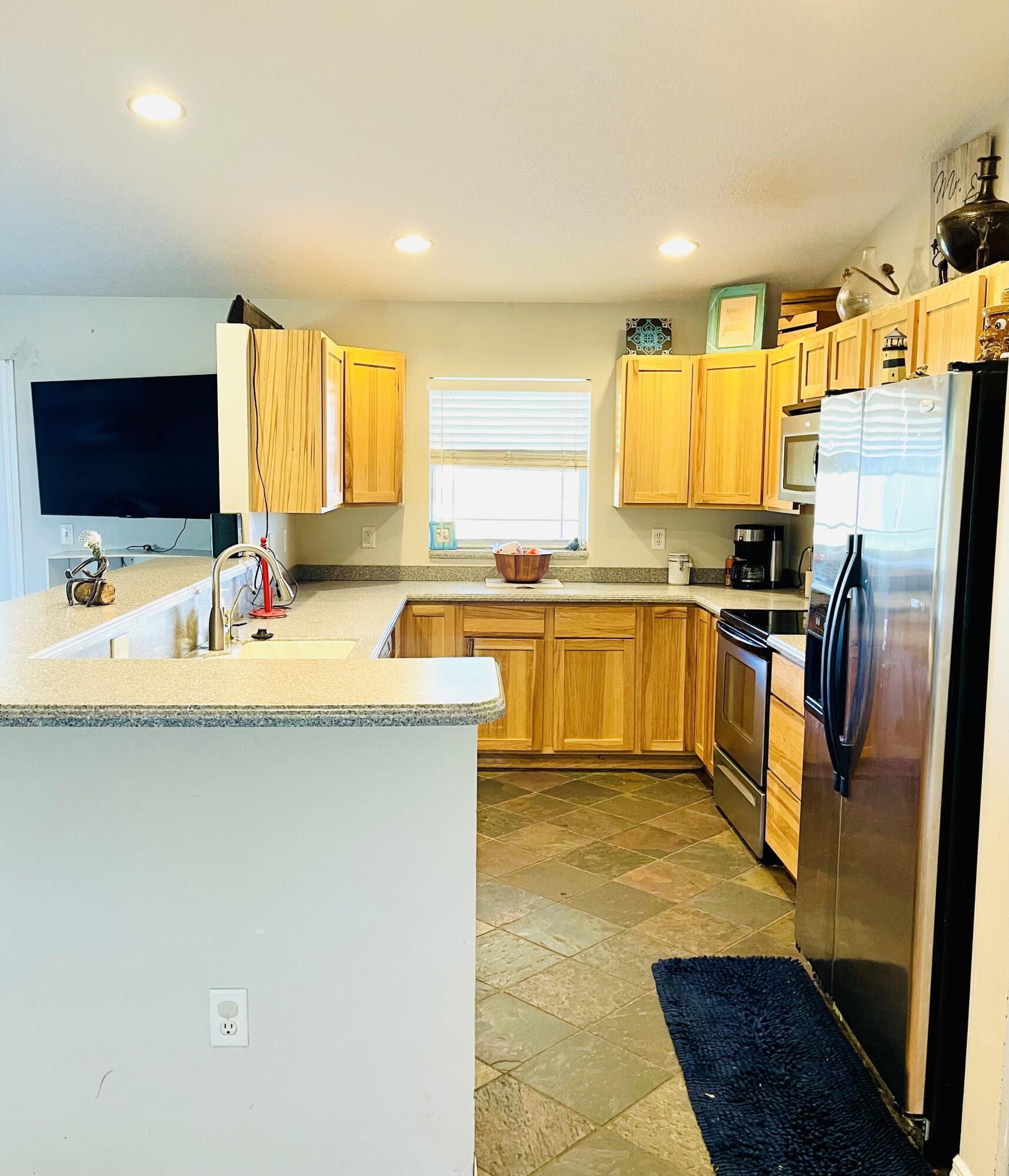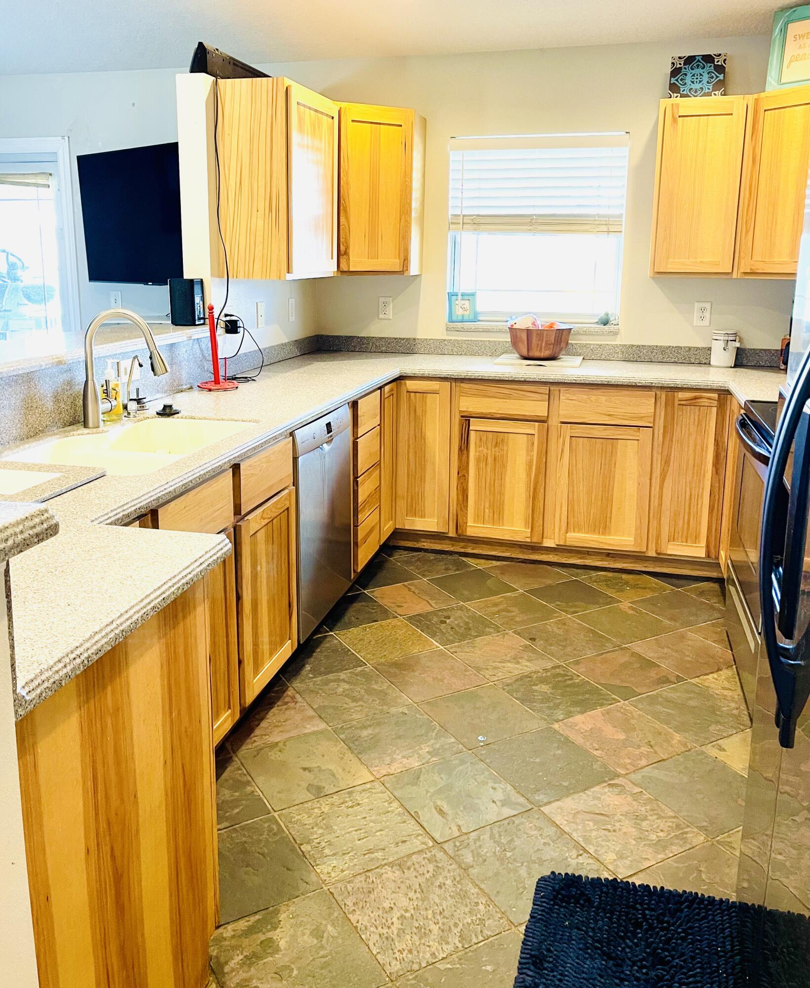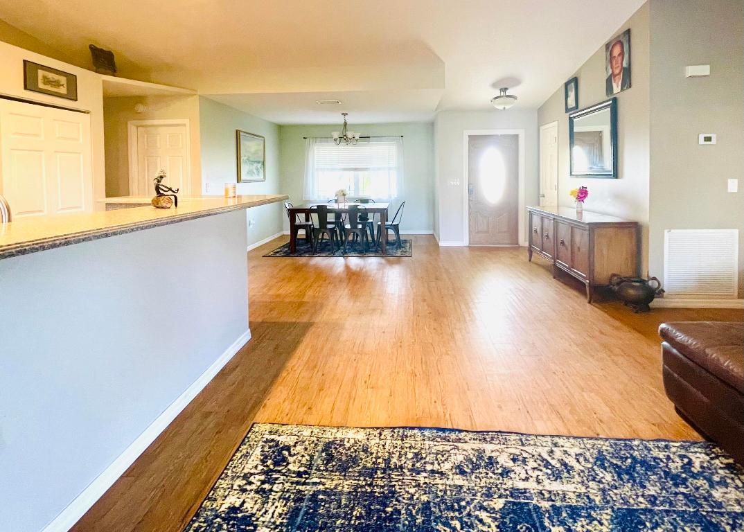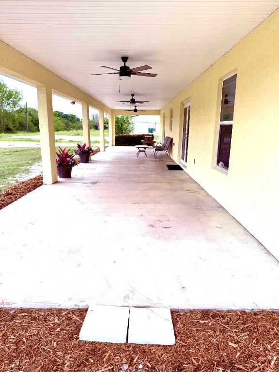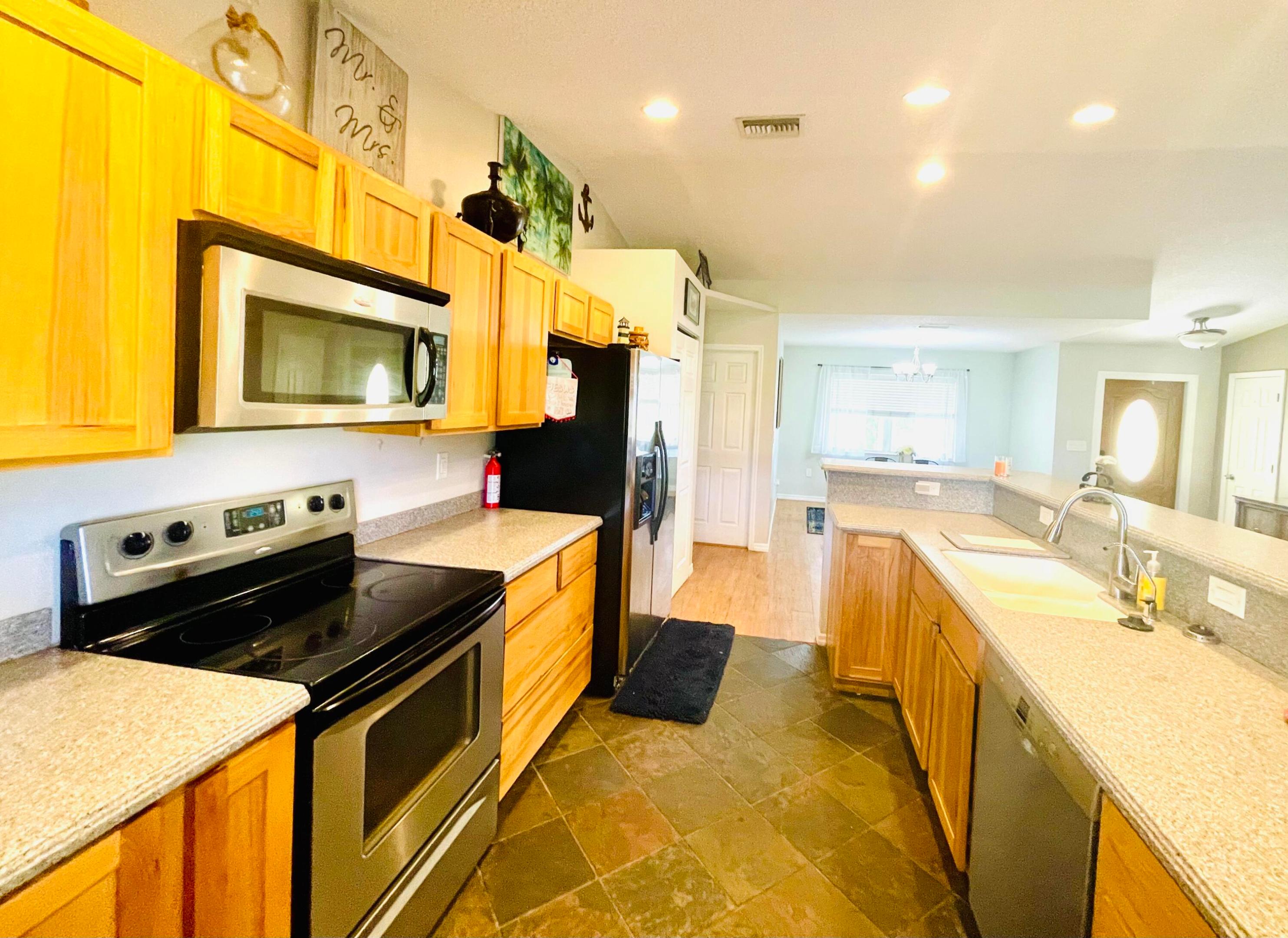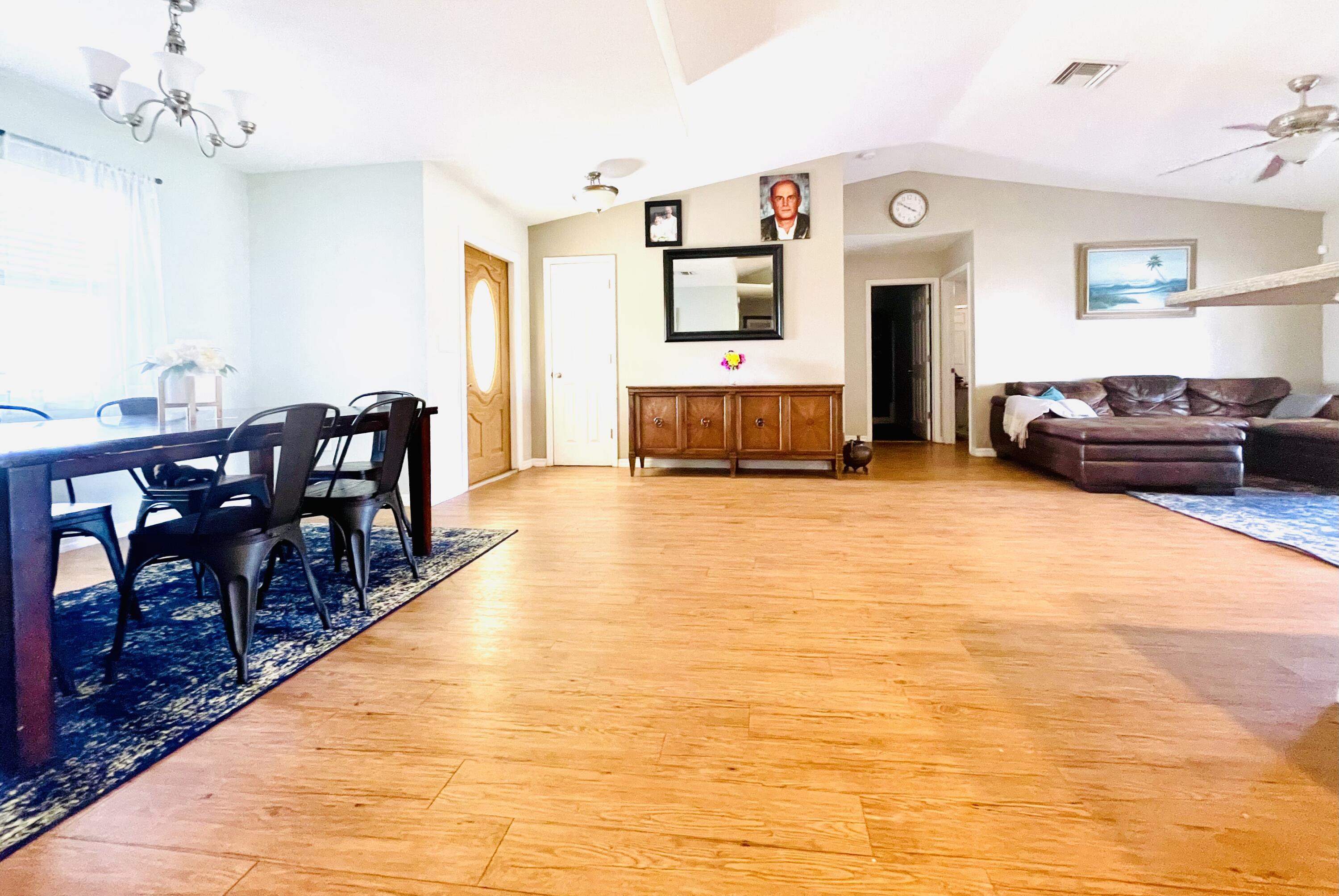 Situated on a half-acre lot, this property boasts 4 bedrooms and 2 bathrooms. The interior features beautiful hickory cabinets complemented by durable Corian countertops. With 1,871 square feet of living space within a total of 3,127 square feet, there's plenty of room for family and guests. The open-concept, split floor plan offers both convenience and privacy. On one side, you'll find 3 bedrooms and a full bath, while the other side features a master suite with an oversized bathroom designed for relaxation, including a walk-in shower and a large Jacuzzi tub. French doors from the master suite open onto a generous 57x12 covered back patio, overlooking the backyard and a 40x30 metal shop with a canopy overhang. The expansive family and dining area, located at the heart of the home, also provides access to the back patio through French doors, perfect for entertaining and enjoying the outdoor space.
