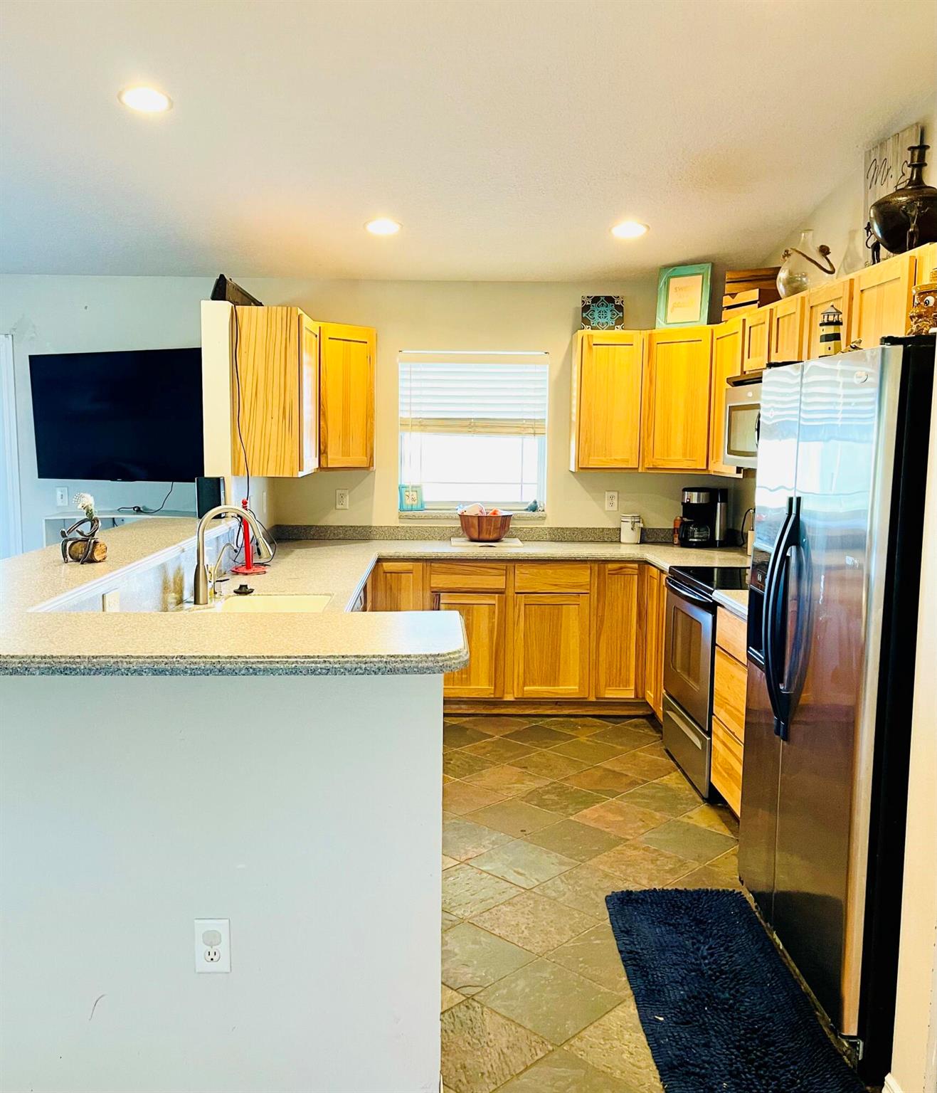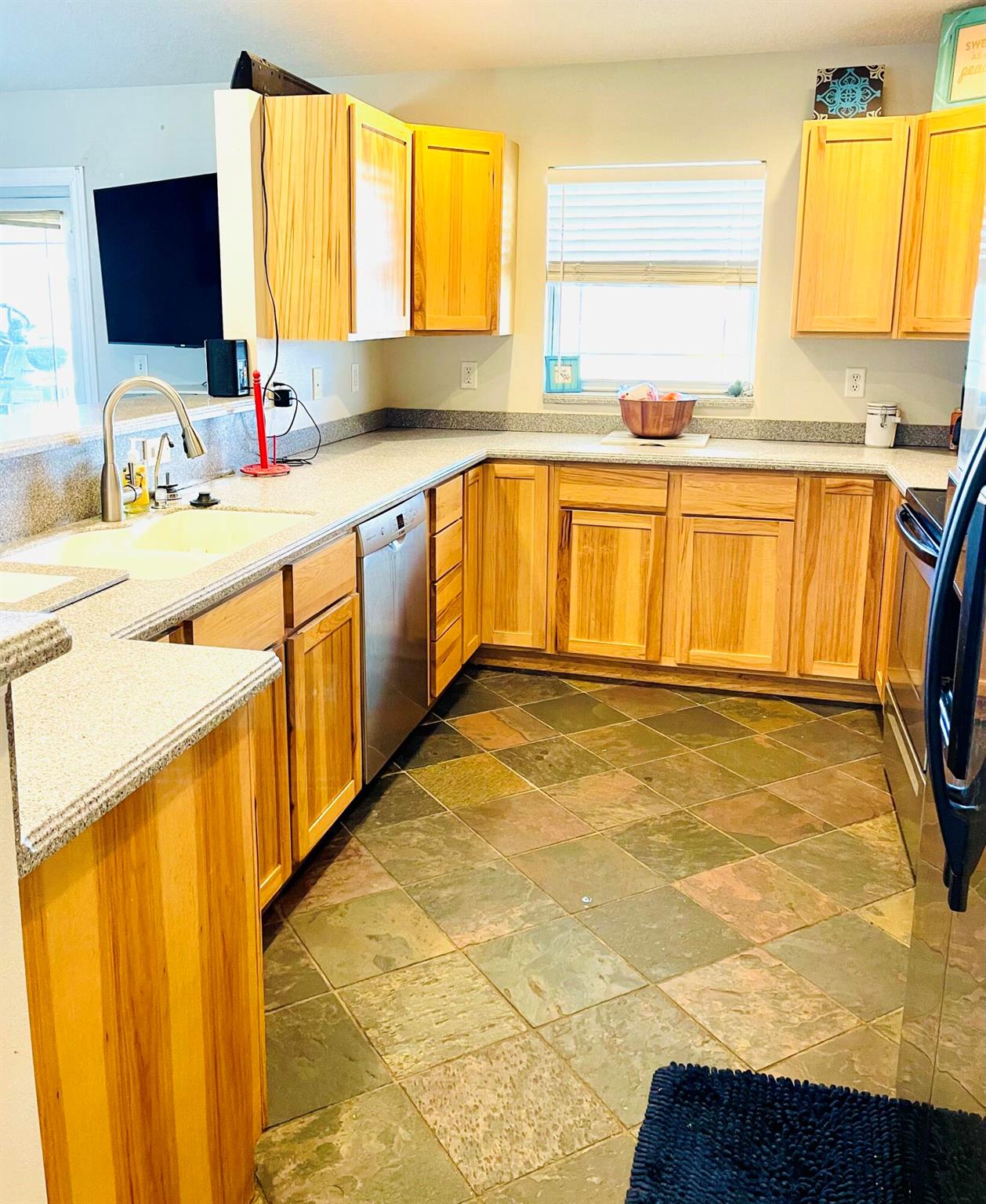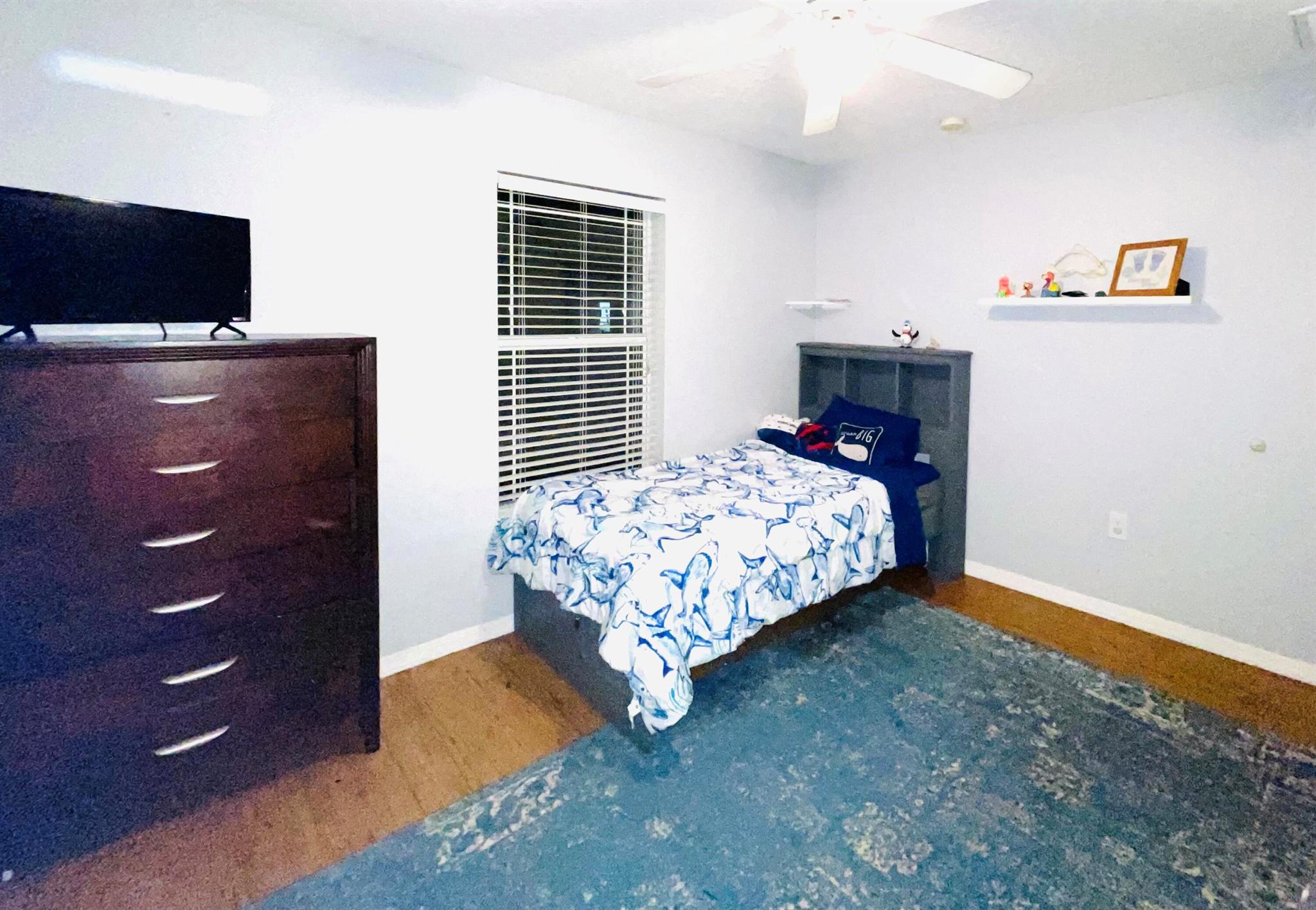 Welcome to this beautiful custom-built home in the desirable Edgewater Acres!Situated on a half-acre lot, this property boasts 4 bedrooms and 2 bathrooms. The interior features beautiful hickory cabinets complemented by durable Corian countertops. With 1,871 square feet of living space within a total of 3,127 square feet, there's plenty of room for family and guests. The open-concept, split floor plan offers both convenience and privacy. On one side, you'll find 3 bedrooms and a full bath, while the other side features a master suite with an oversized bathroom designed for relaxation, including a walk-in shower and a large Jacuzzi tub. French doors from the master suite open onto a generous 57x12 covered back patio, overlooking the backyard and a 40x30 metal shop with a canopy overhang.