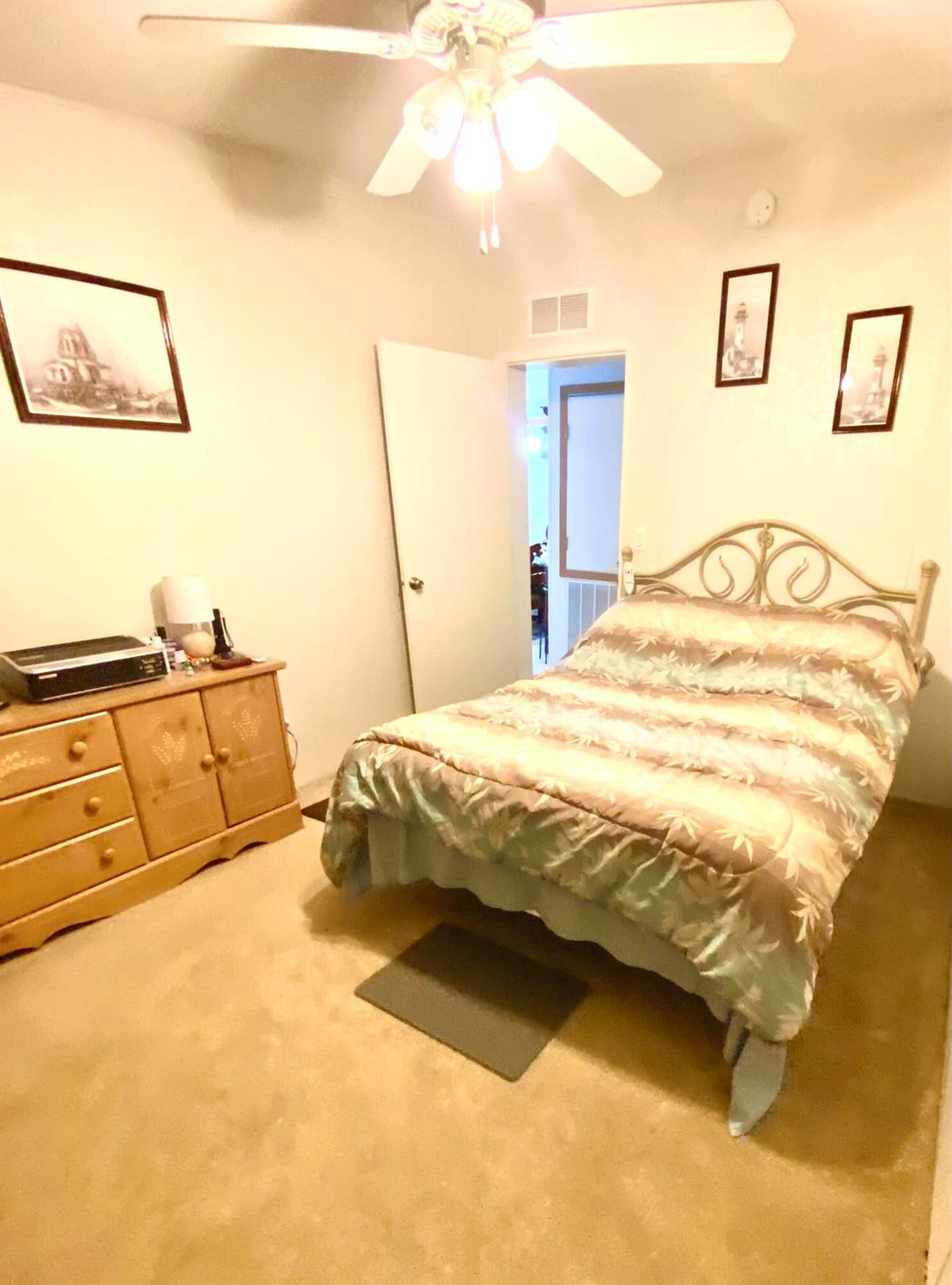 Three spacious bedrooms.with walk in closets, The Master Bedroom is an oversized room with plenty of space for a king bed and all the furniture you need. The Master Bath has a walk in closet attached, and has a separated shower and upgraded walk in tub. The spacious living room has wood built ins. The front door has a glass door attached. A formal dining area connects to a large eat in kitchen.